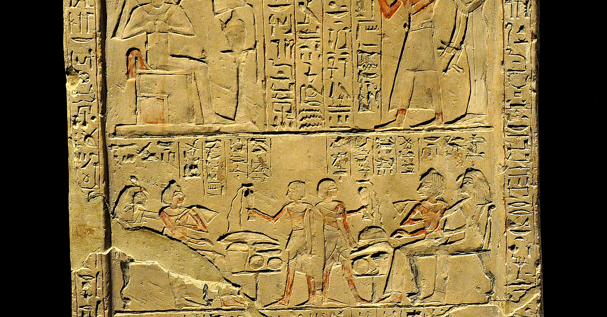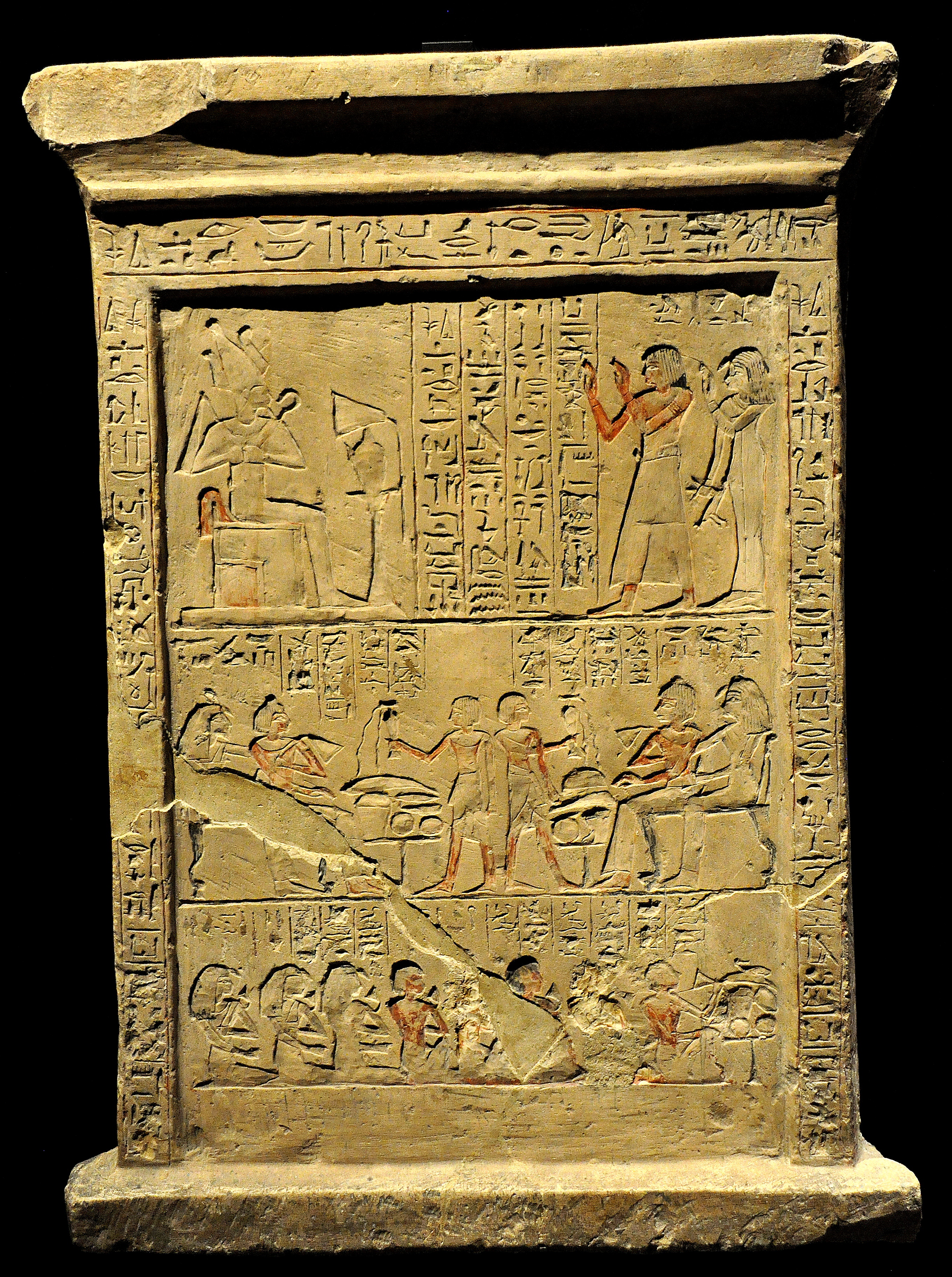 Limestone stela of Pairi. The stela was re-used again by Nefery. From modern-day Egypt. New Kingdom, 18th Dynasty, circa 1300 BCE. (State Museum of Egyptian Art, Munich, Germany).