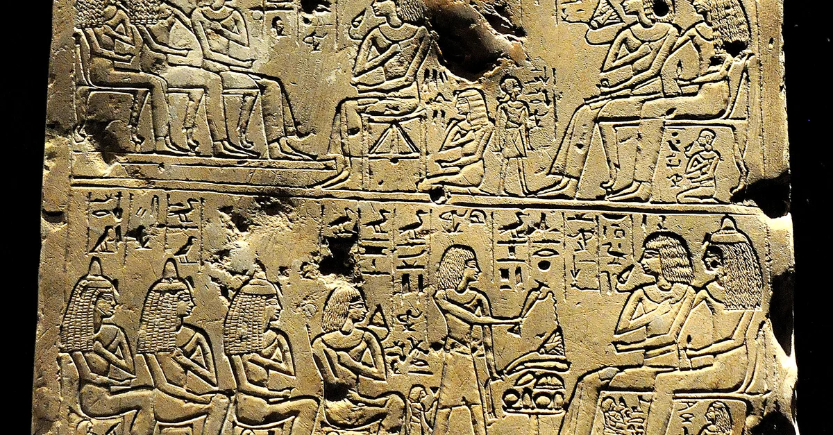 Limestone stela of Amunherhetef, the fan-bearer. From modern-day Egypt. New Kingdom, 18th Dynasty, circa 1380 BCE. (State Museum of Egyptian Art, Munich, Germany).