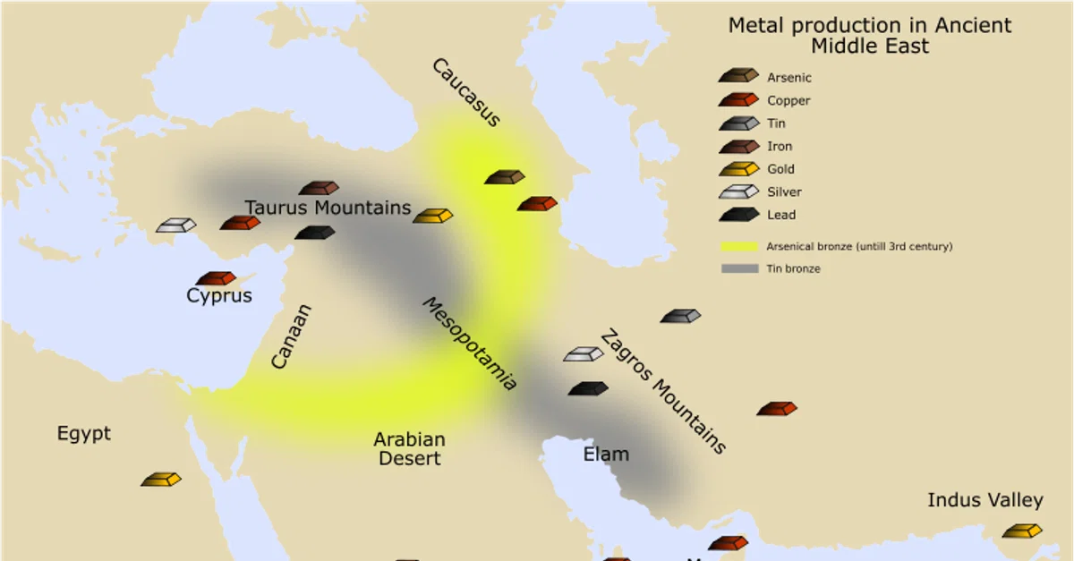 Phirosiberia, C. &. (2012, April 26). Ancient Near Eastern Metal Production. World History Encyclopedia. https://www.worldhistory.org/image/350/ancient-near-eastern-metal-production/