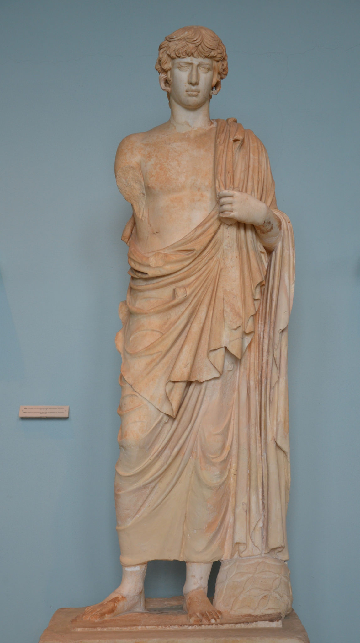 Statue of the deified Antinous represented as Asclepius, found in the outer court of the sanctuary of Demeter and Kore at Eleusis (Greece) which it apparently adorned, 2nd century CE. (Archaeological Museum of Eleusis)