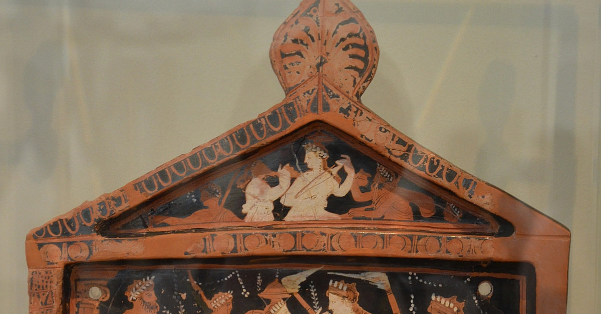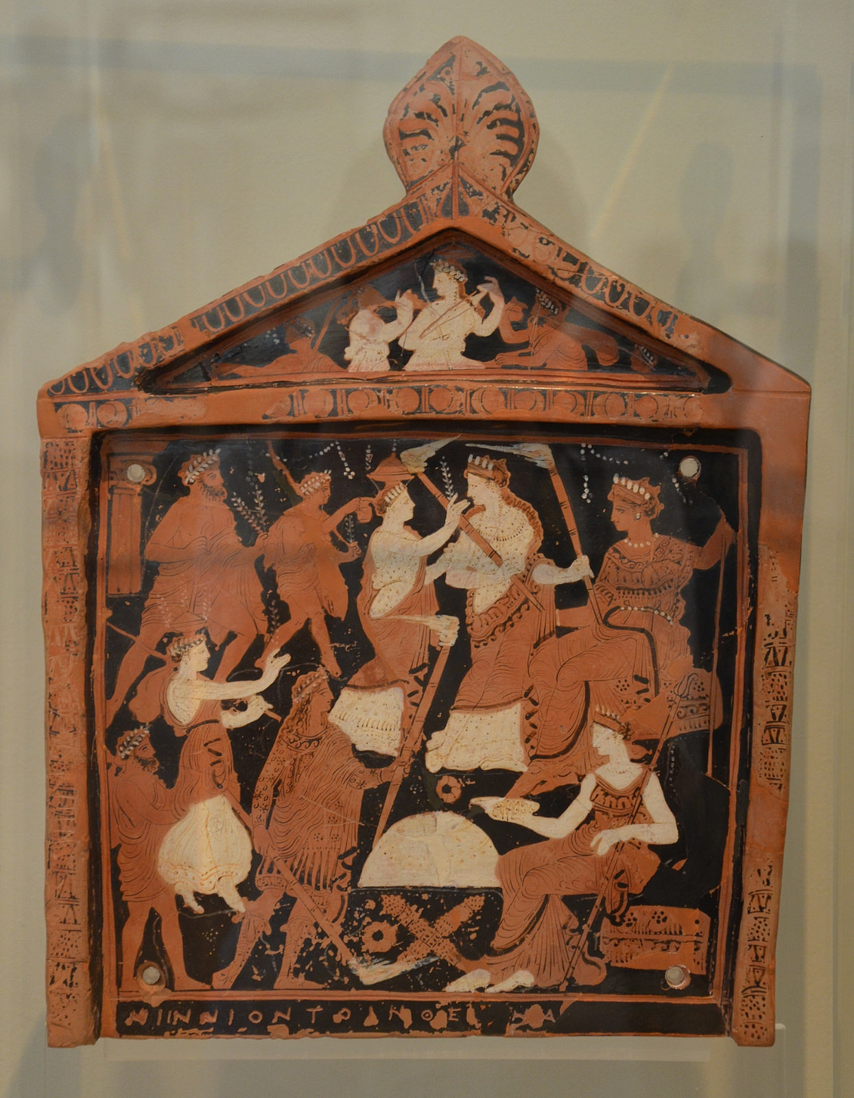 Terracotta votive plaque dedicated by Ninnion to the two great goddesses of Eleusis (Demeter and Persephone). Middle of 4th century BCE. (Archaeological Museum of Athens, Greece)
