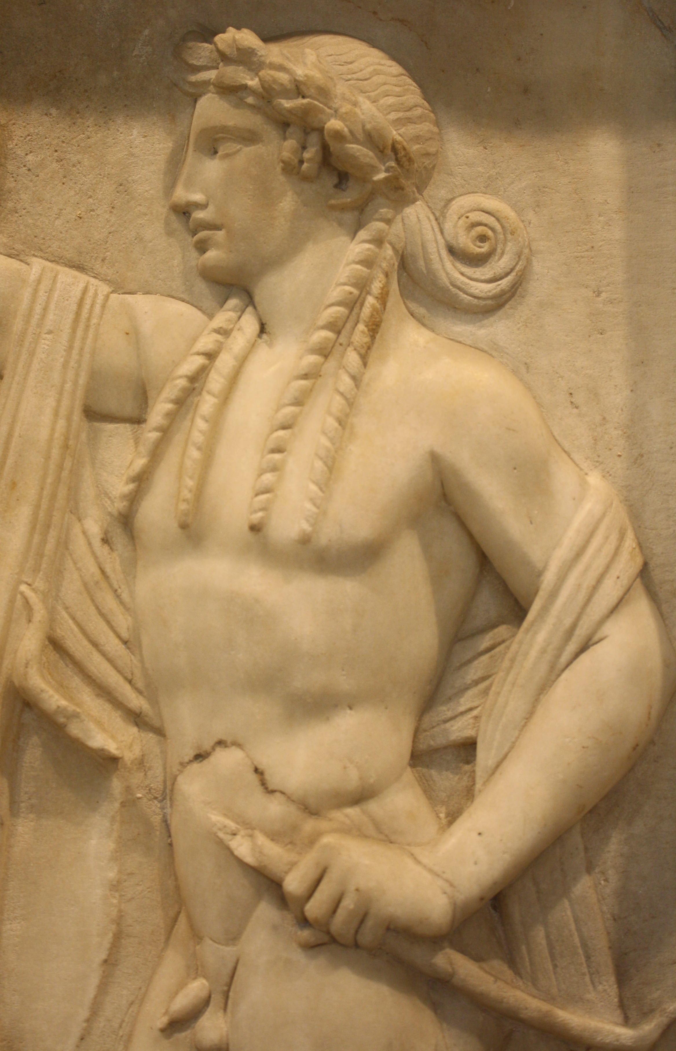 Apollo, detail from a 2nd century CE funerary relief slab. (Archaeological Museum of Piraeus)