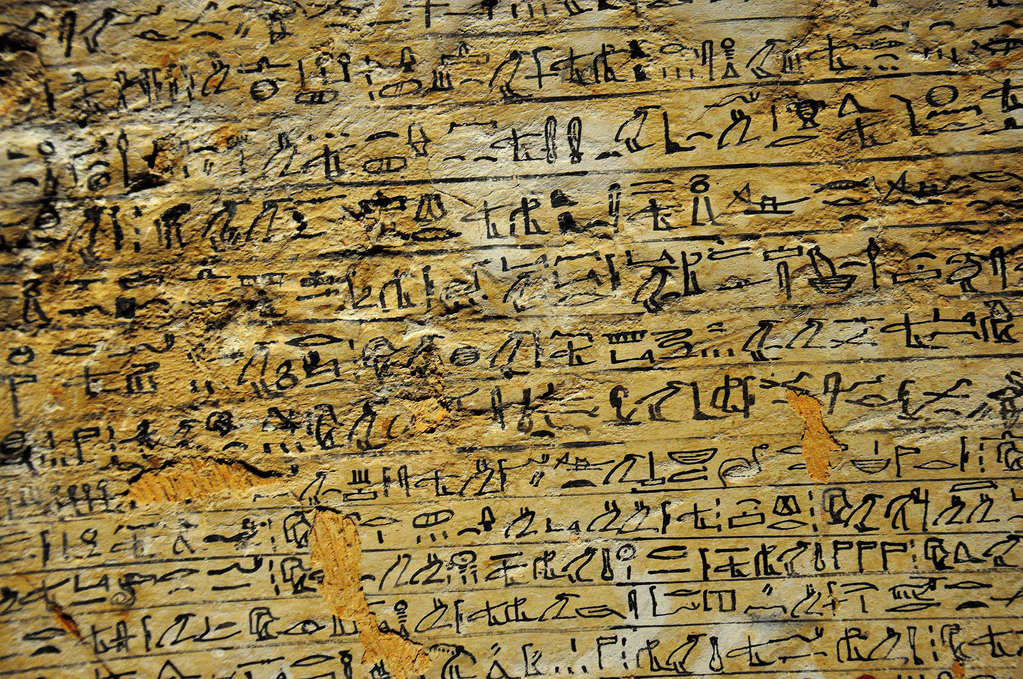 Sitdjehuti was a sister and daughter of Egyptian pharaohs. This is a close-up view of the back side of the the upper part of her coffin, which was made of gold-plated sycamore wood and stucco. There are hieroglyphic inscriptions. From Western Thebes, modern-day Egypt. 17th Dynasty, circa 1575 BCE. State Museum of Egyptian Art, Munich, Germany. Exclusive photo!