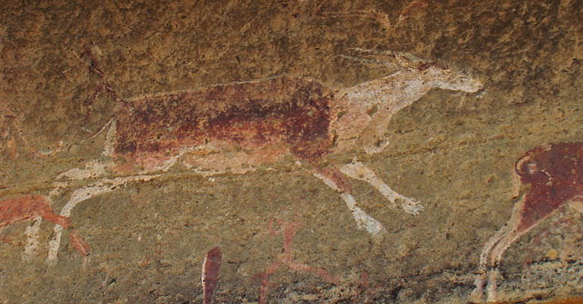 San rock painting of an eland found in Drakensberg, South Africa.