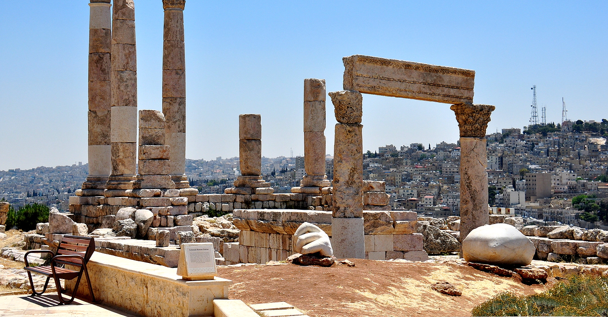 Parts of the Roman temple of Hercules have survived. The temple lies within the Amman Citadel (Jabal al-Qal'a), modern-day Amman city, Jordan. It dates back to the 2nd century CE.