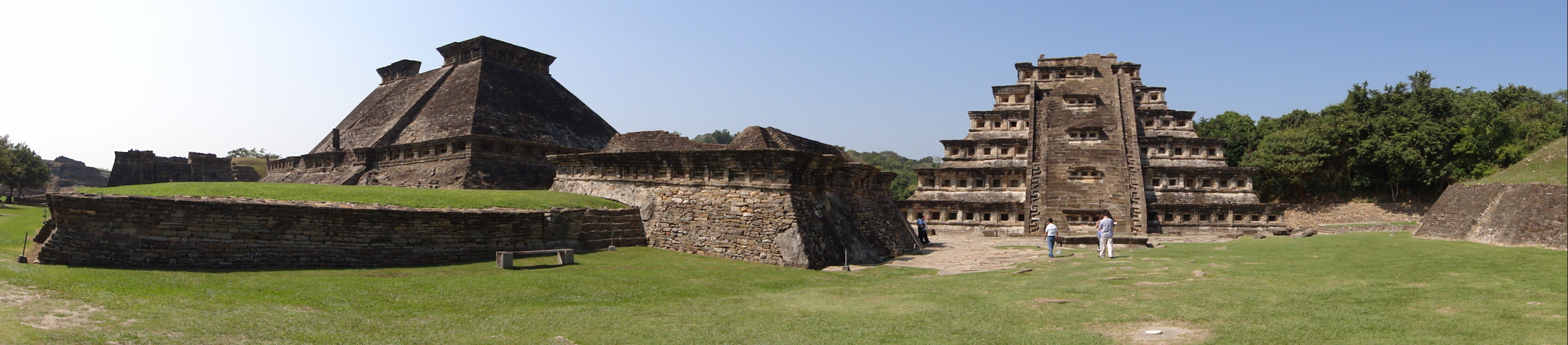 The central plaza of El Tajin, Veracruz, Mexico. The 6th century CE Pyramid of the Niches is on the right.