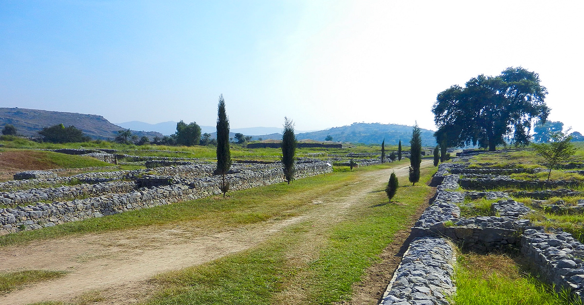 A view of the main street of Sirkap, the second city of Taxila