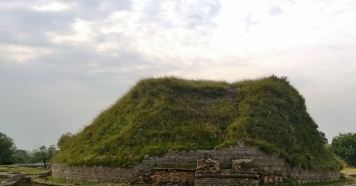 Dharmarajika Stupa, near Taxila in northern Pakistan, thought to be built by the Maurya Emperor Asoka in the third century BCE over the remains of the Buddha and expanded upon by succeeding rulers.