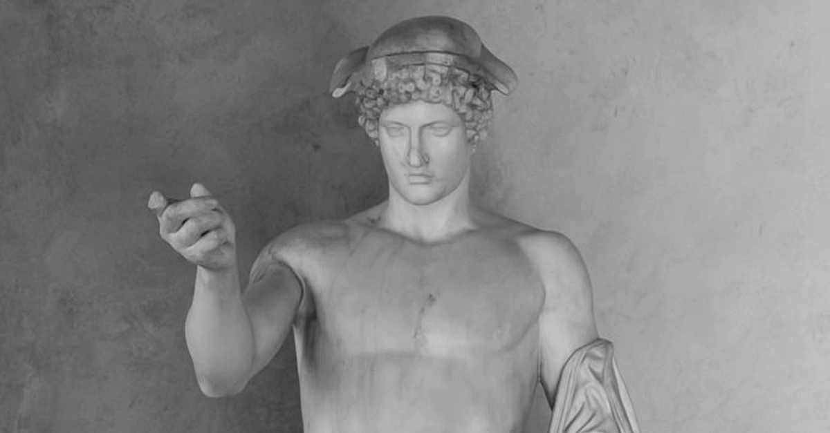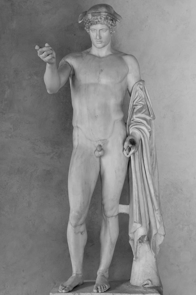Hermes Loghios; 2nd century CE copy of 5th century BCE bronze attributed to Phidias; Restored by Alessandro Algardi in 17th century CE, he added the right arm; Palazzo Altemps in Rome, Italy