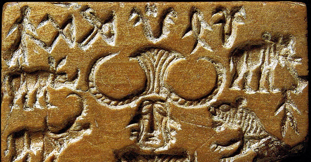 Seal discovered during the excavation of the Mohenjo-daro archaeological site in the Indus Valley has drawn attention as a possible representation of a "yogi" or "proto-Shiva" figure. This "Pashupati" (Lord of Animals, Sanskrit paśupati) seal shows a seated figure, possibly ithyphallic, surrounded by animals. 2600–1900 BCE.