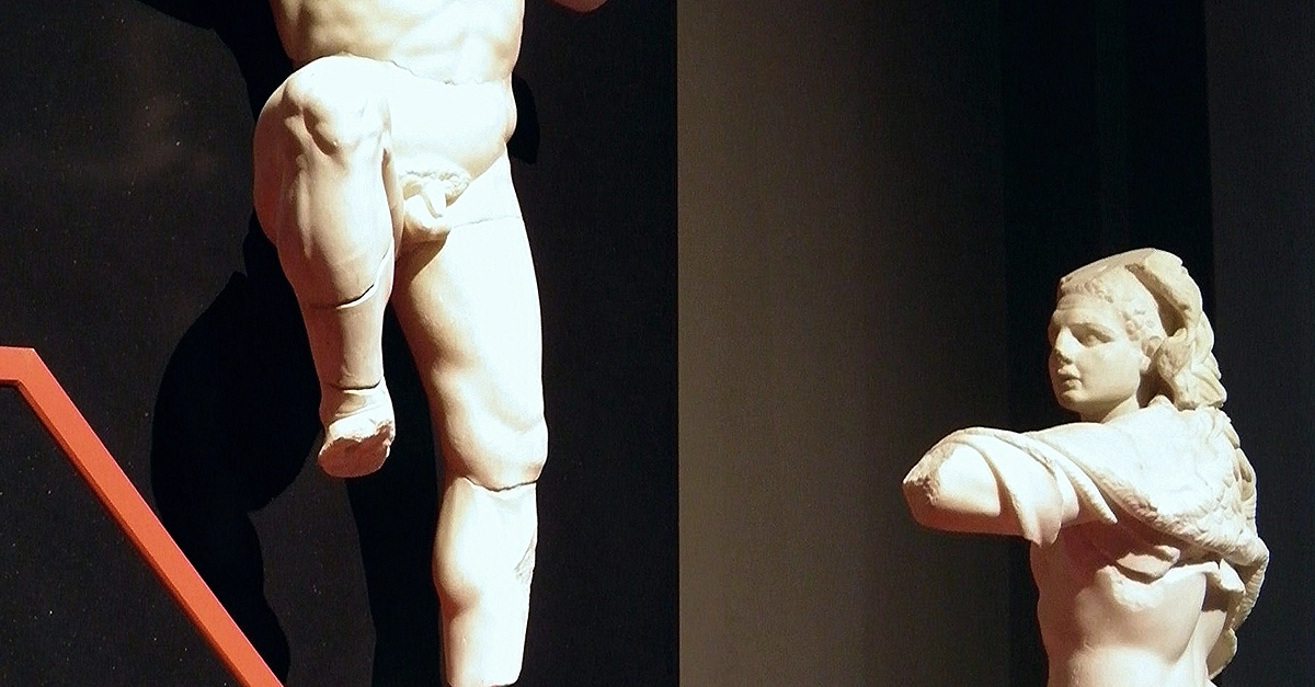 Statue group depicting the liberation of Prometheus by the Greek hero Heracles. Prometheus is freed from the eagle's torment. Found in the North Hall of the Athena Terrace at Pergamon (Turkey). Dated to 100 BCE. (Pergamon Museum, Berlin)