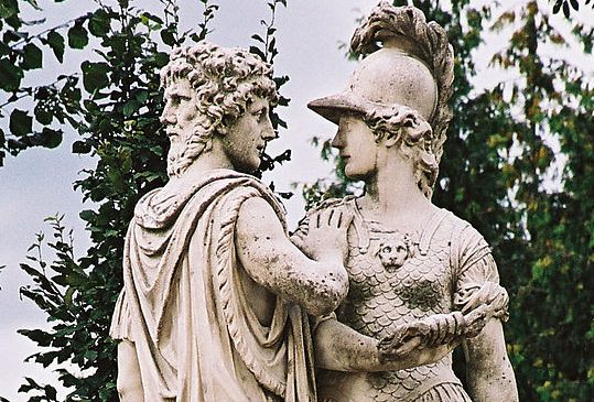 Janus, Roman god of gates, doorways, beginnings, and endings, and Bellona, Roman goddess of war. Sculpture by Johann Wilhelm Beyer, 1773-80 CE, Vienna, Schönbrunn Garden.
