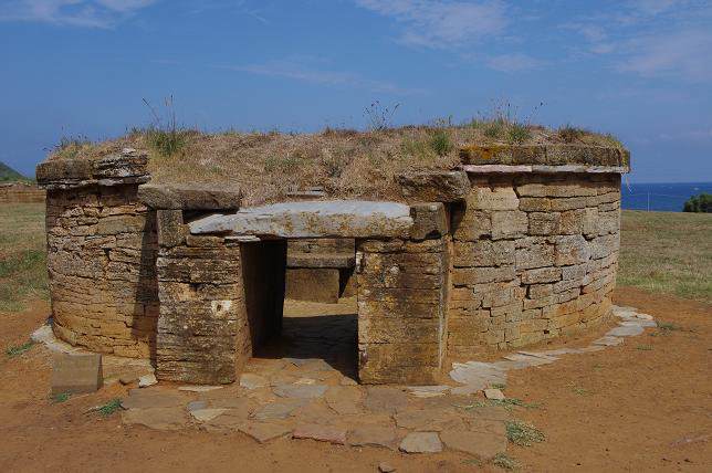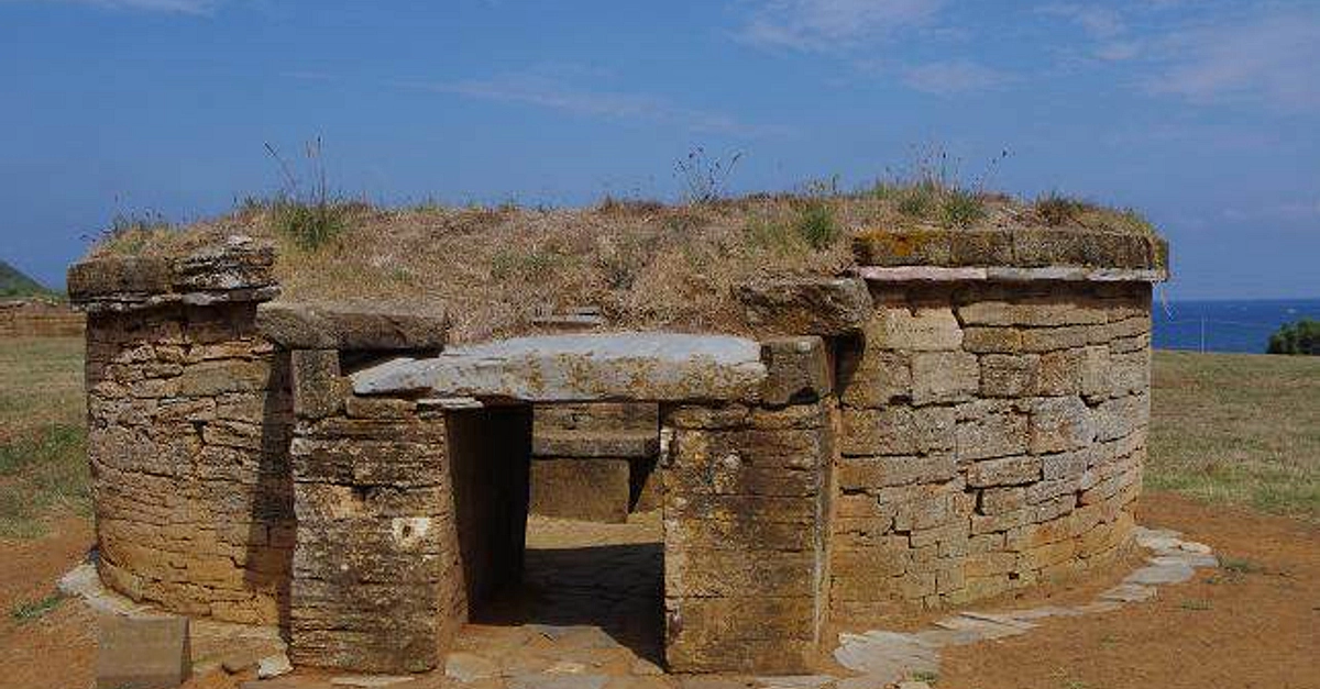 One of three tumulus tombs with stone plinths located in the Etruscan necropolis of Populonia, Italy, 7th-4th centuries B.C.E.