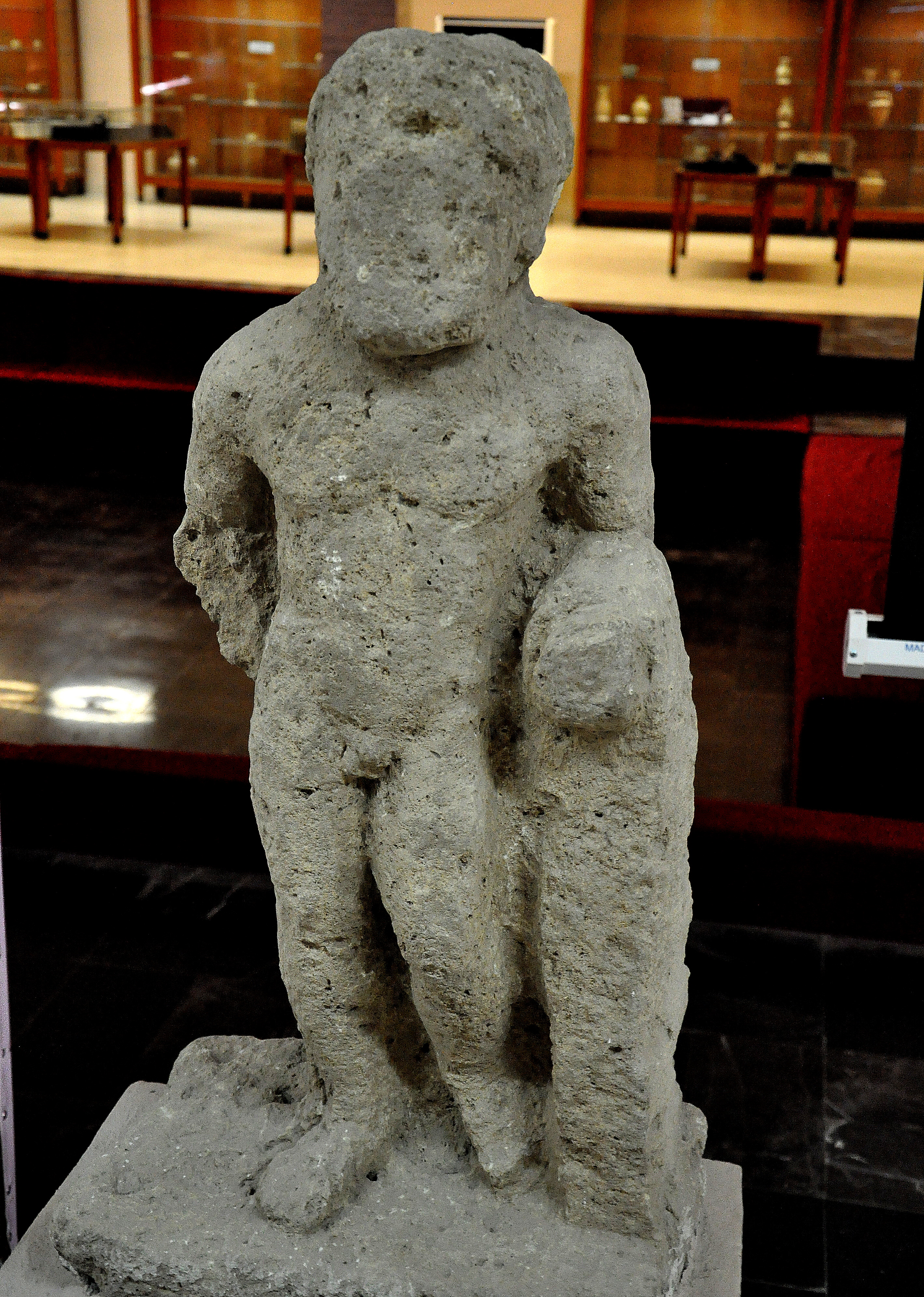 The right arm of this standing nude statue of Hercules is lost while the left arm holds a lion's skin. From Hatra (modern Al-Jazira region, Ninawa Governorate, Iraq), Mesopotamia. 2nd-3rd centuries CE. The Sulaimaniya Museum, Iraq.
