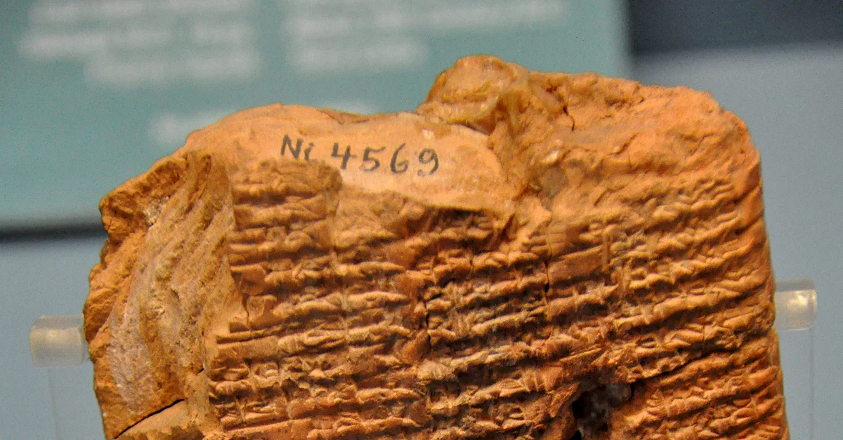This terracotta cuneiform tablet is about the myth of "Inanna prefers the farmer." In this myth, Enkimdu (the god of farming) and Dumuzi (the god of food and vegetation) tried to win the hand of the goddess Inanna. From Nippur (modern Nuffar, Al-Qadisiyah Governorate, Iraq), southern Mesopotamia. Sumerian, 1st half of the 2nd millennium BCE. (Istanbul Archeological Museums/Ancient Orient Museum, Istanbul, Turkey).