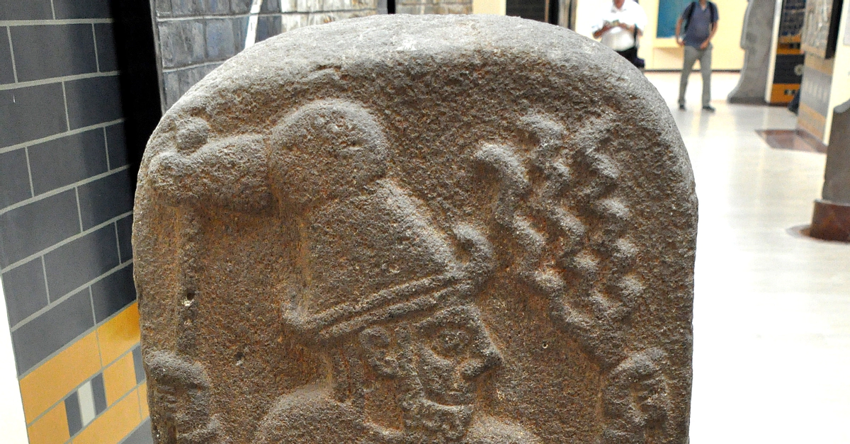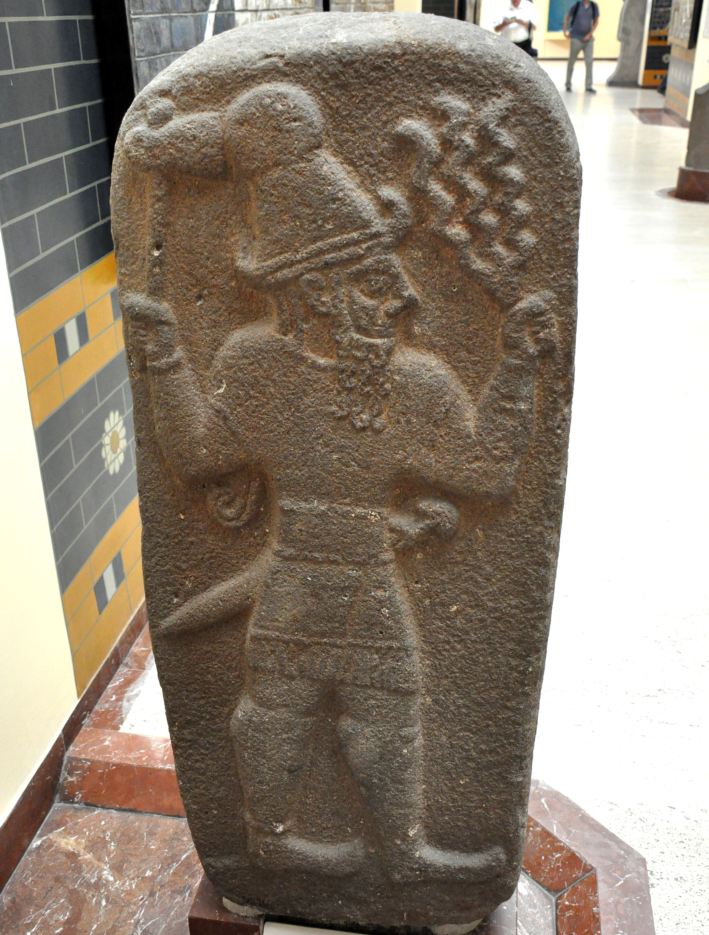 This basalt stela of the storm god Hadad of Aleppo was brought to the palace museum of King Nebuchadnezzar II as war booty. From Babylon, modern-day Iraq. Late Hittite period, 9th century BCE. (Istanbul Archaeological Museums/Ancient Orient Museum, Istanbul, Turkey).