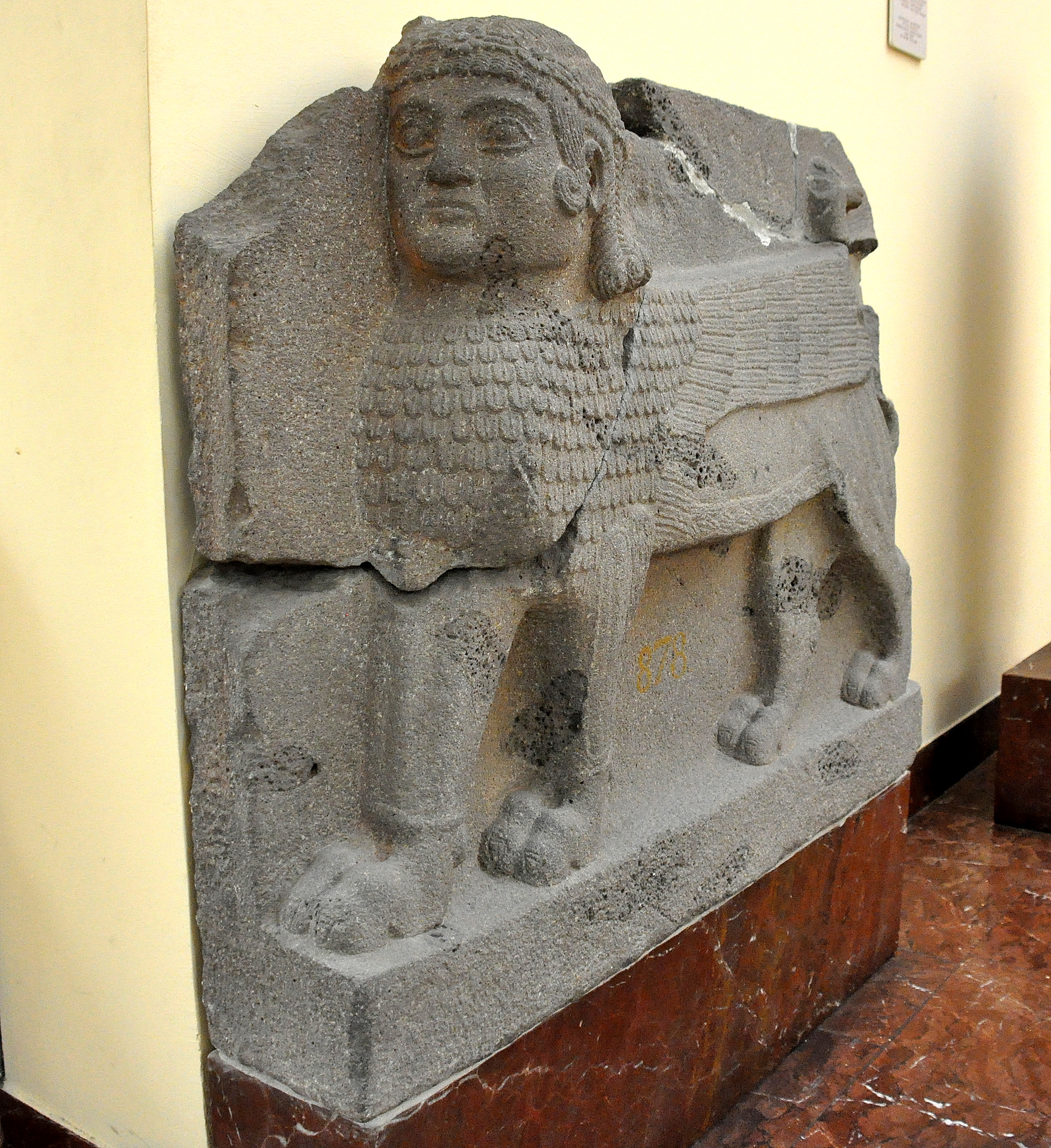 This basalt Hittite sphinx was placed at the entrance into the palace number three at Sam'al (modern-day Sinjerli, Gaziantep, Turkey). Late Hittite period, 8th century BCE. (Istanbul Archaeological Museums/Ancient Orient Museum, Istanbul, Turkey).