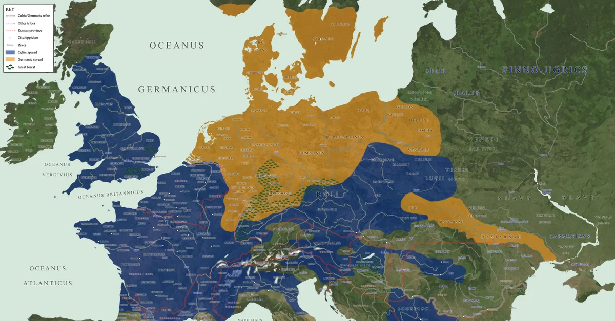 Files, T. H. (2015, March 05). Map of Celtic and Germanic Tribes. World History Encyclopedia. https://www.worldhistory.org/image/3687/map-of-celtic-and-germanic-tribes/