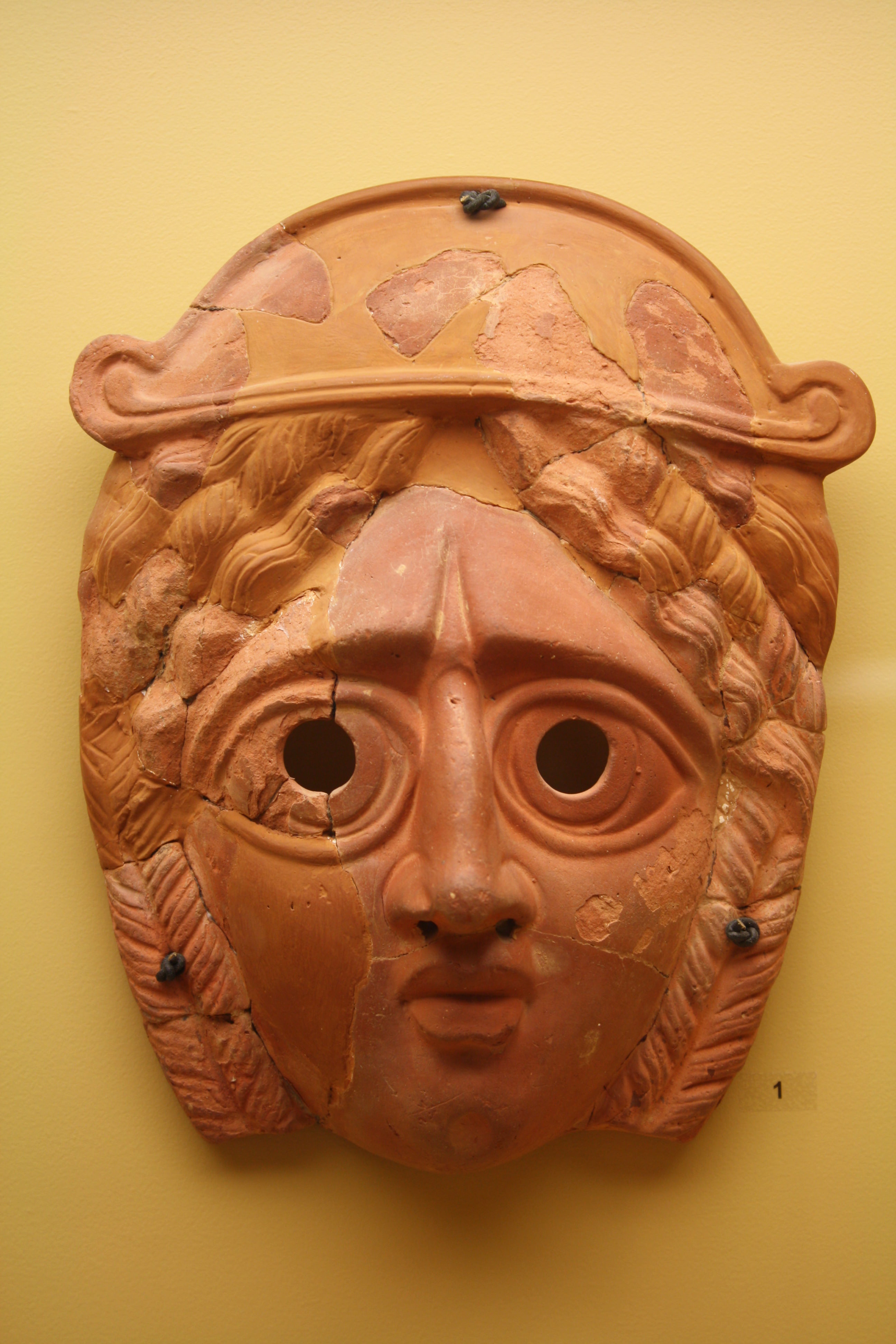 A terracotta tragic theatre mask, 200-250 BCE. (Agora Museum, Athens)