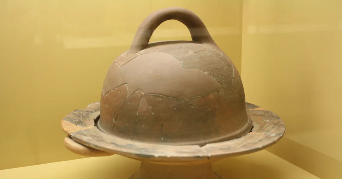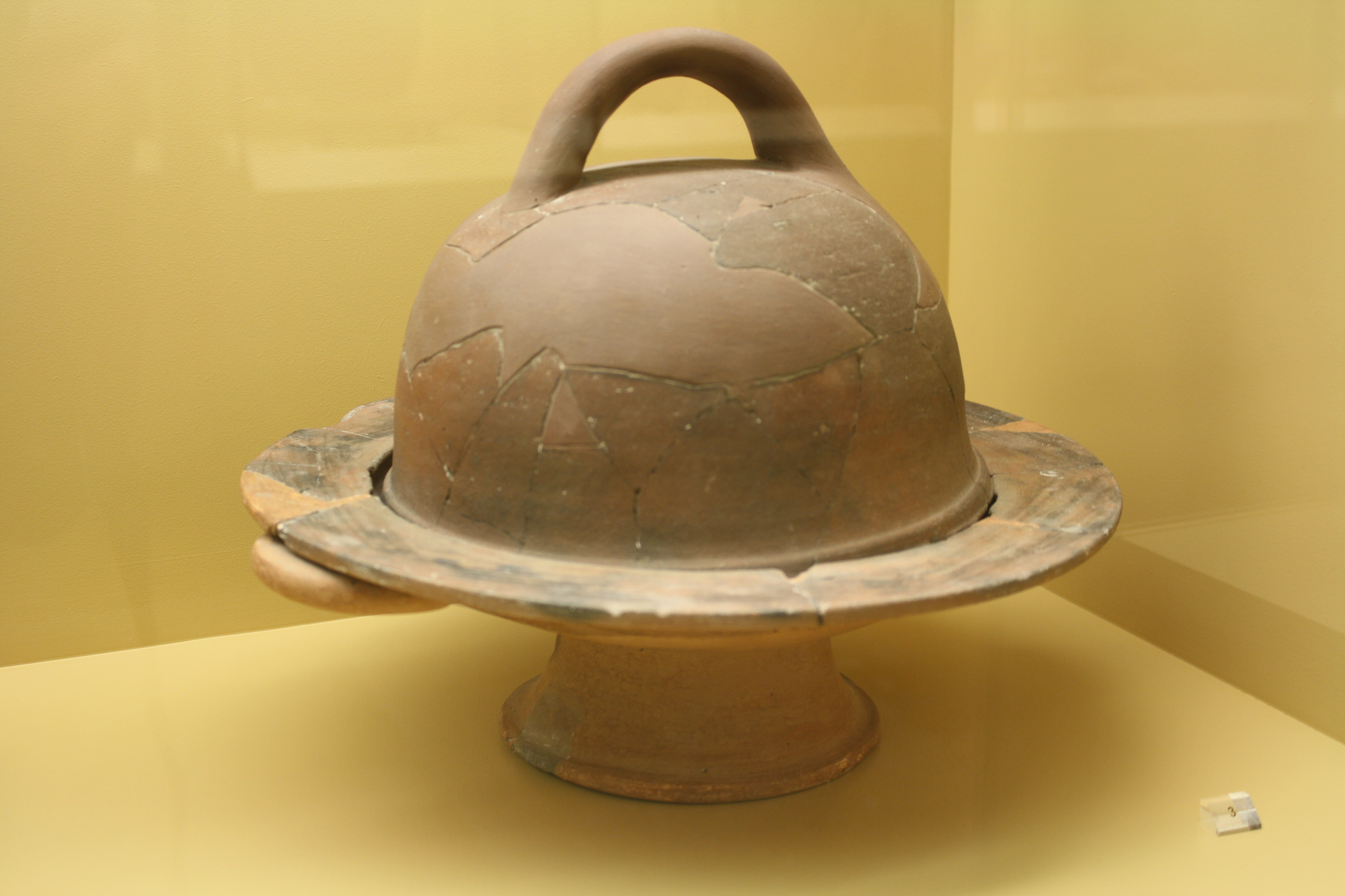 A shallow terracotta cooking hearth with bell-shaped cover. 6th-4th centuries BCE. (Agora Museum, Athens)