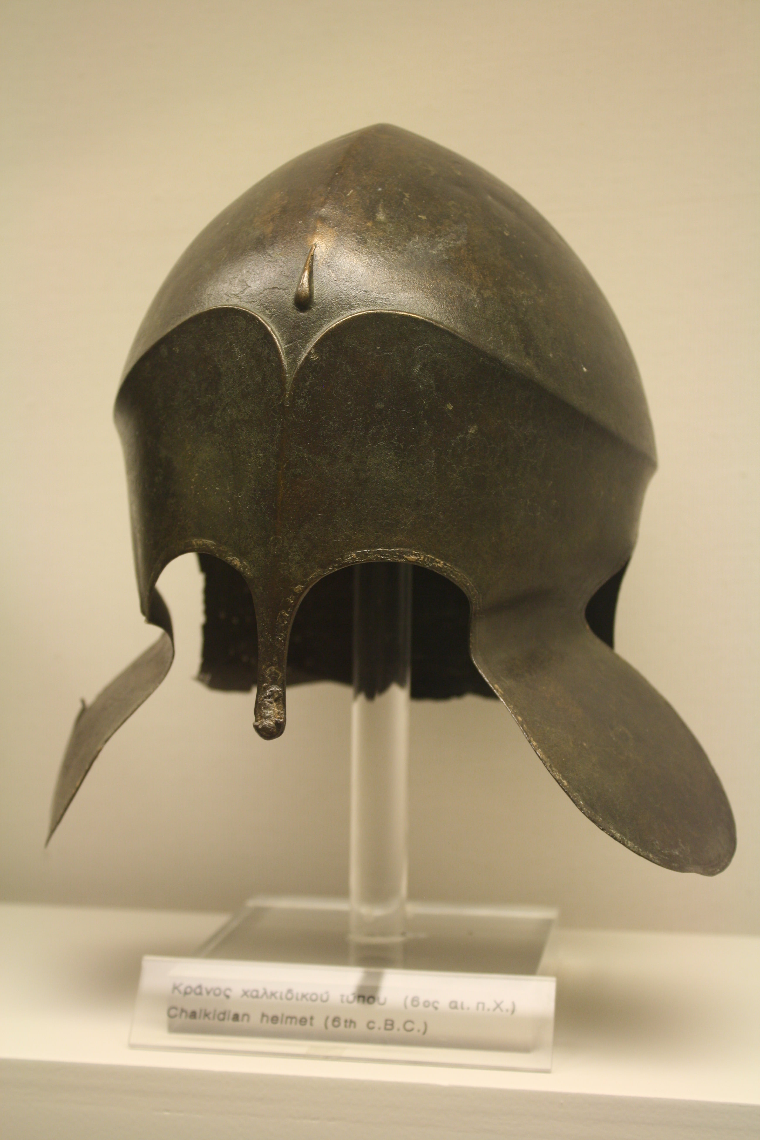 Bronze Chalcidian helmet, 6th Century BCE. (Archaeological Museum, Piraeus)
