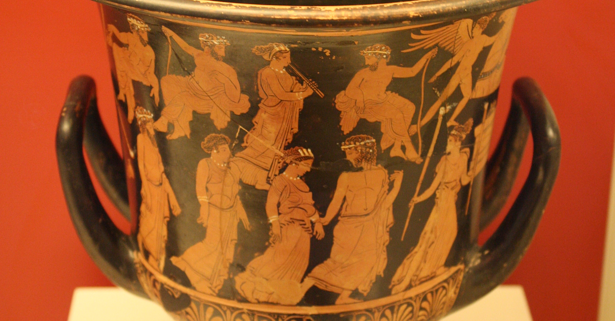 A red-figure calyx krater from Boeotia, c. 410 BCE. The scene depicts a wedding procession. (National Archaeological Museum, Athens)