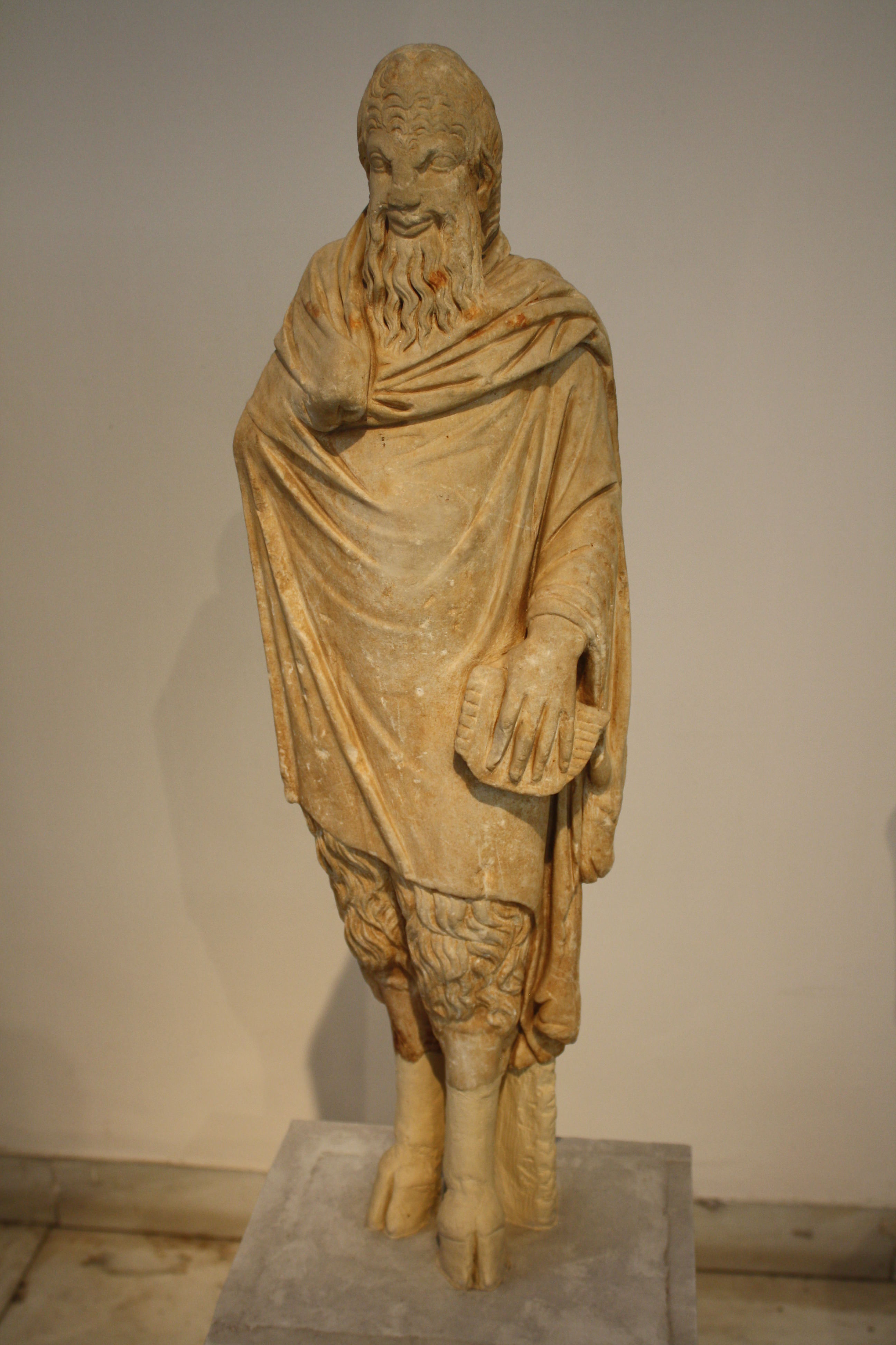 A Parian marble statue of Pan. He holds a panpipe and wears an animal skin. From Sparta. 1st century CE copy of a 4th century BCE original. (National Archaeological Museum, Athens)