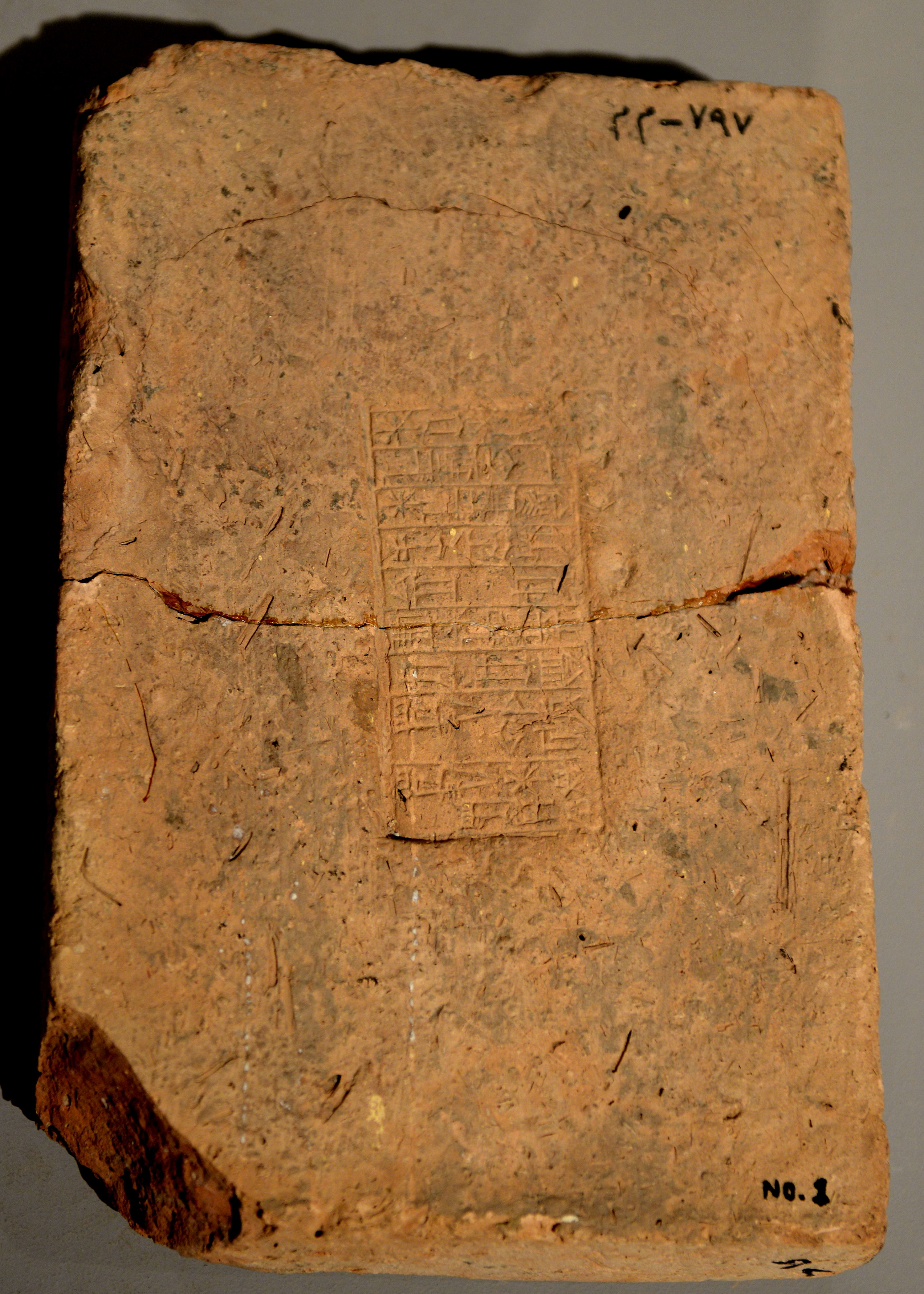 The cuneiform inscriptions stamped on this mud-brick mention the name of Amar-sin, king of Ur. Amar-sin was the 3rd king of Ur III Dynasty, and son of Shulgi. From Mesopotamia, modern-day Iraq. Neo-Sumerian period, Ur III, end of the 3rd millennium BCE. The Sulaymaniyah Museum, Iraq.