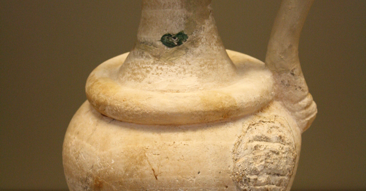 A Minoan alabaster jug, Crete, 15th century BCE. (National Archaeological Museum, Athens)