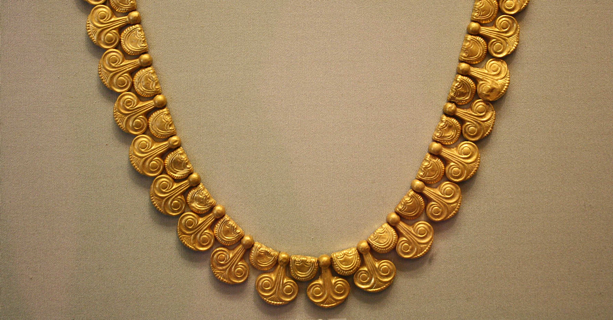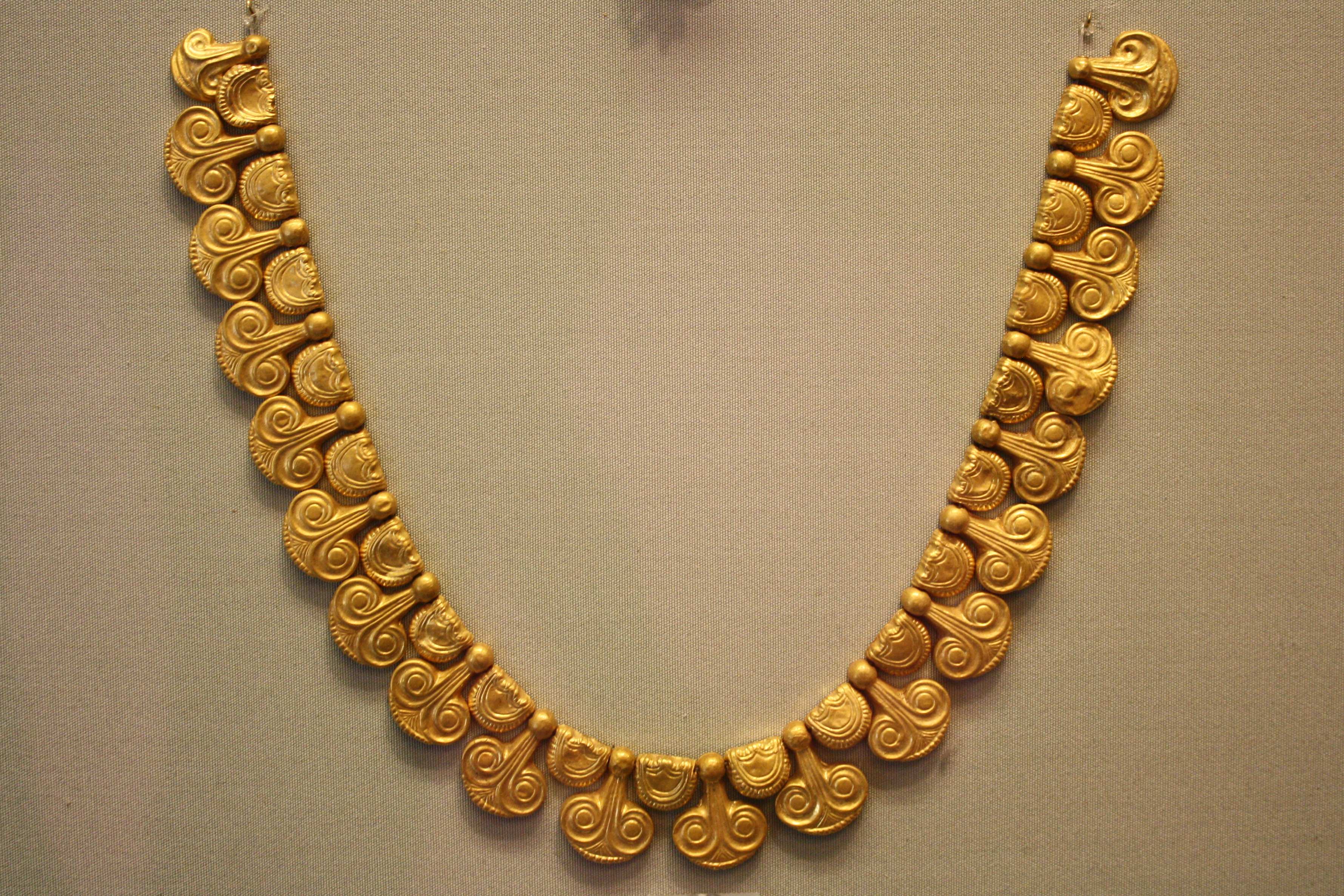 Cartwright, M. (2015, April 20). Mycenaean Gold Necklace, Dendra. World History Encyclopedia. https://www.worldhistory.org/image/3827/mycenaean-gold-necklace-dendra/
