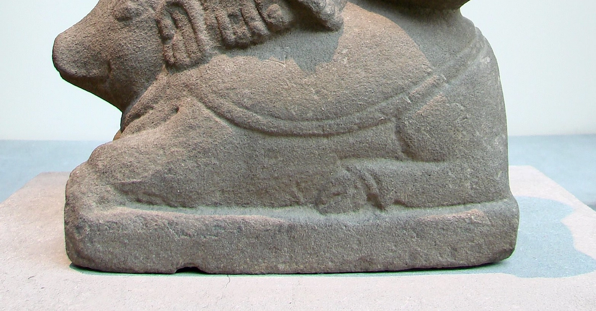 The Hindu god of fire Agni seated on a ram. Angkor Borei, Cambodia, 7th century CE. (Musée Guimet, Paris)