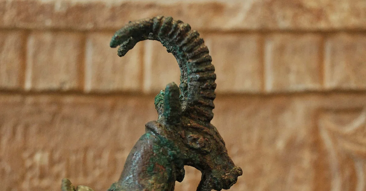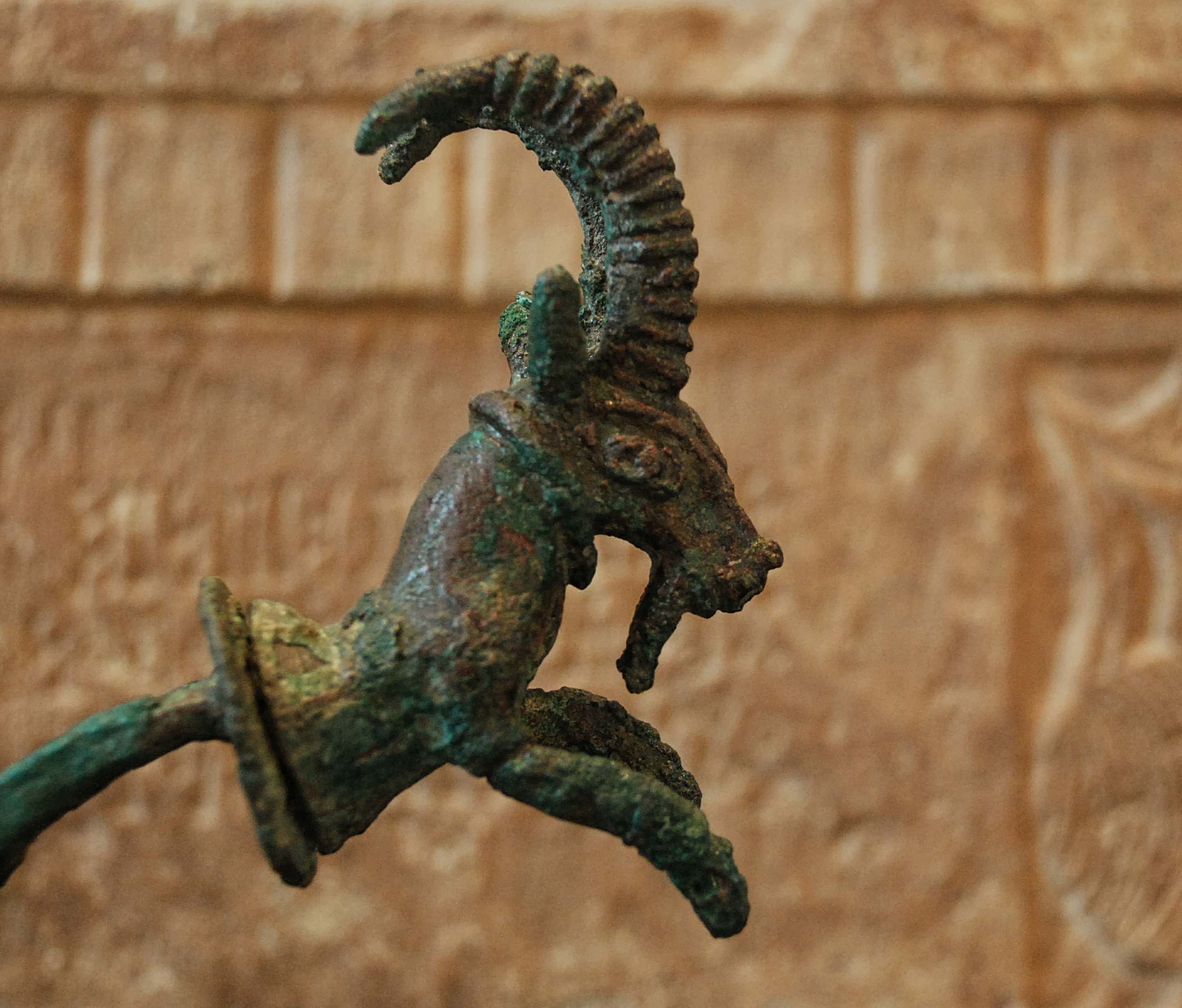 Lamp handle made of bronze in the shape of an ibex. 1st century BCE to 1st century CE. Southern Arabia. Louvre Museum, Paris.