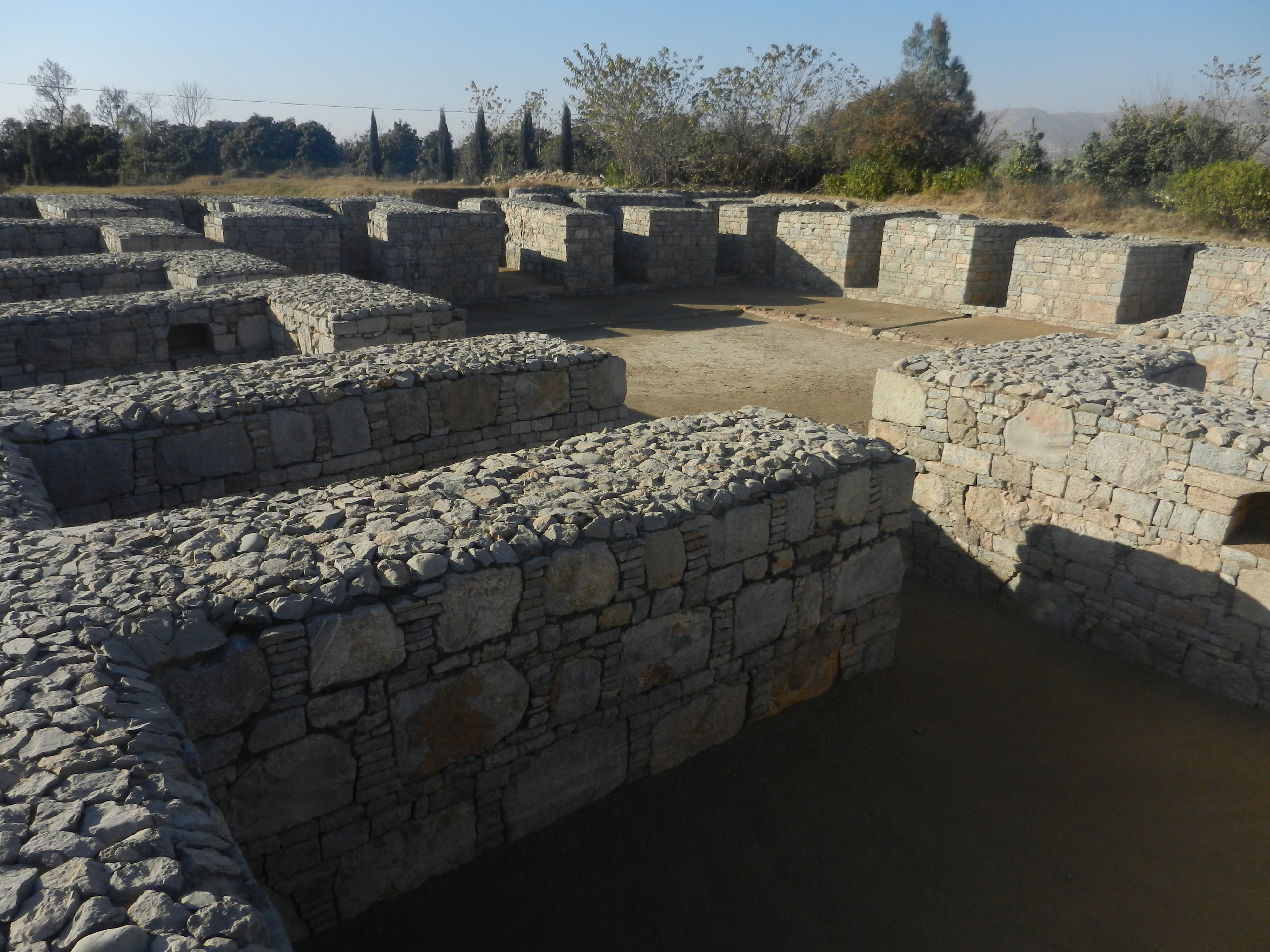 A view of the monastery at the complex at Jinnan Wali Dheri dating to 5th Cent CE. The name literally means "The Mound of Demons" and is a modern name given due to the number of human skeletons that would emerge before excavation from the buried site which gave it a reputation for being the haunt of demons by the locals. It is a smaller site as compared to others but due to its small size has been very well preserved and conserved recently with funding from the U.S. Ambassador's Fund for Cultural Preservation