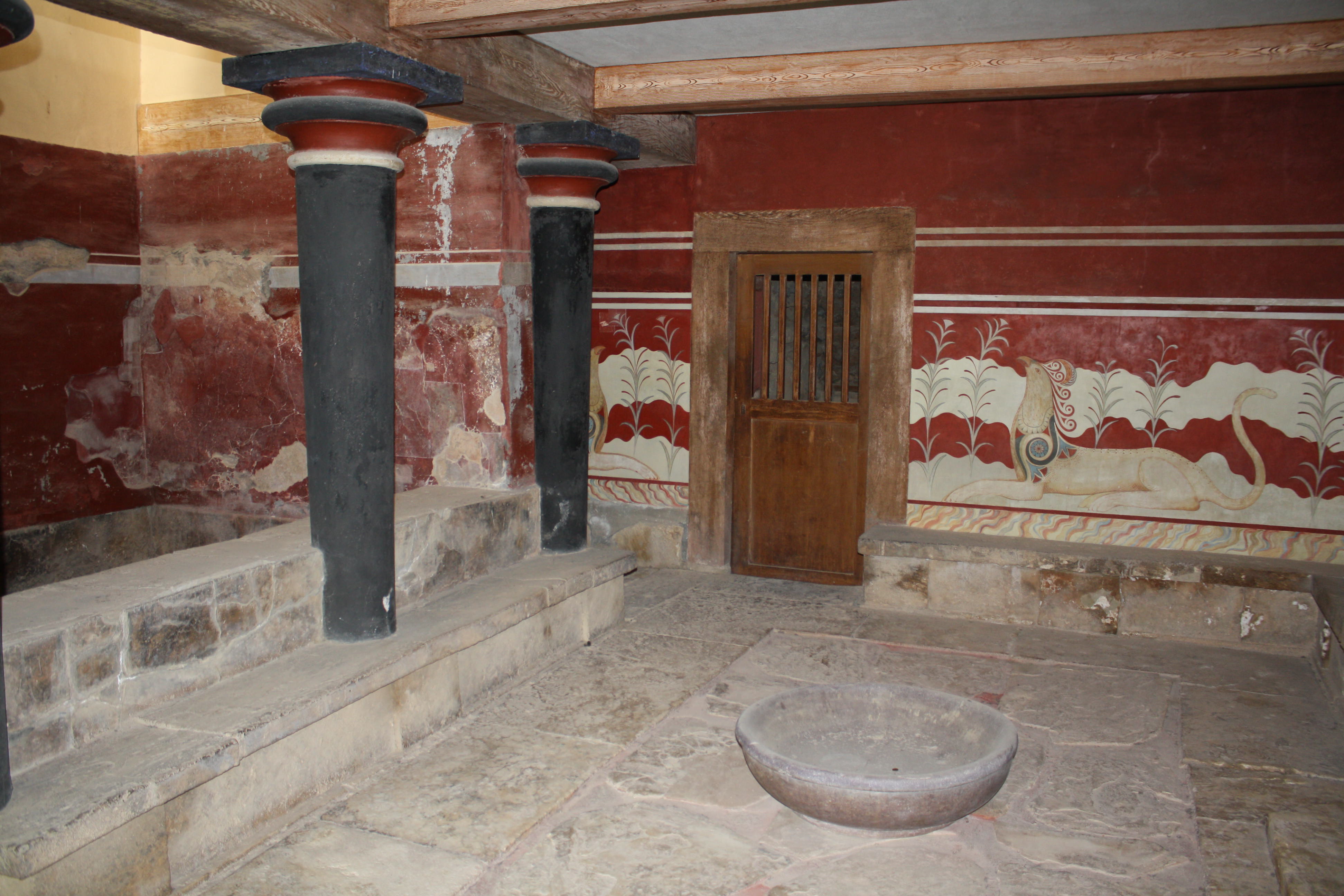 The griffin fresco in situ, Minoan palace of Knossos, Crete, (1700-1450 BCE).