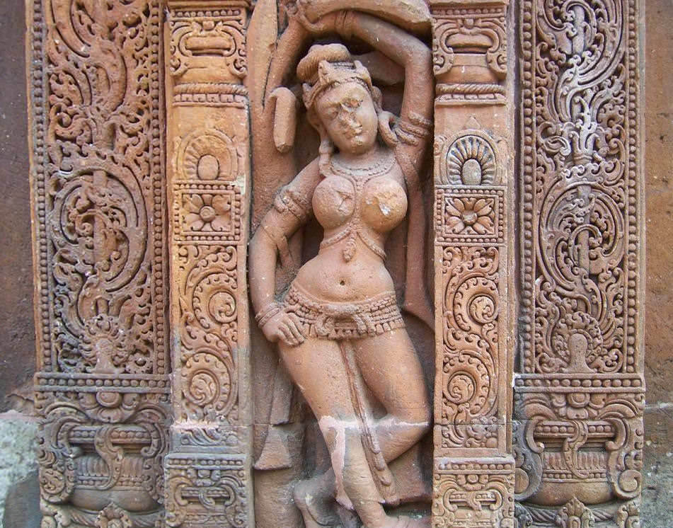 A dancer (shalabhanjika) on the Vaital Deul, Parsurameswar Temple, Bhubaneswar. Late 8th century CE.