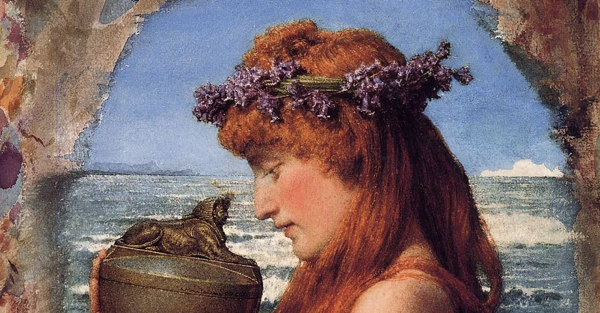 Pandora, the first woman in Greek mythology. 1881 CE, Lawrence Alma-Tadema (Private collection).