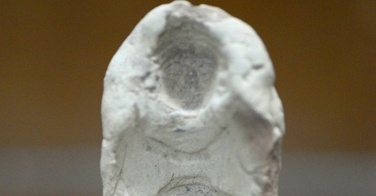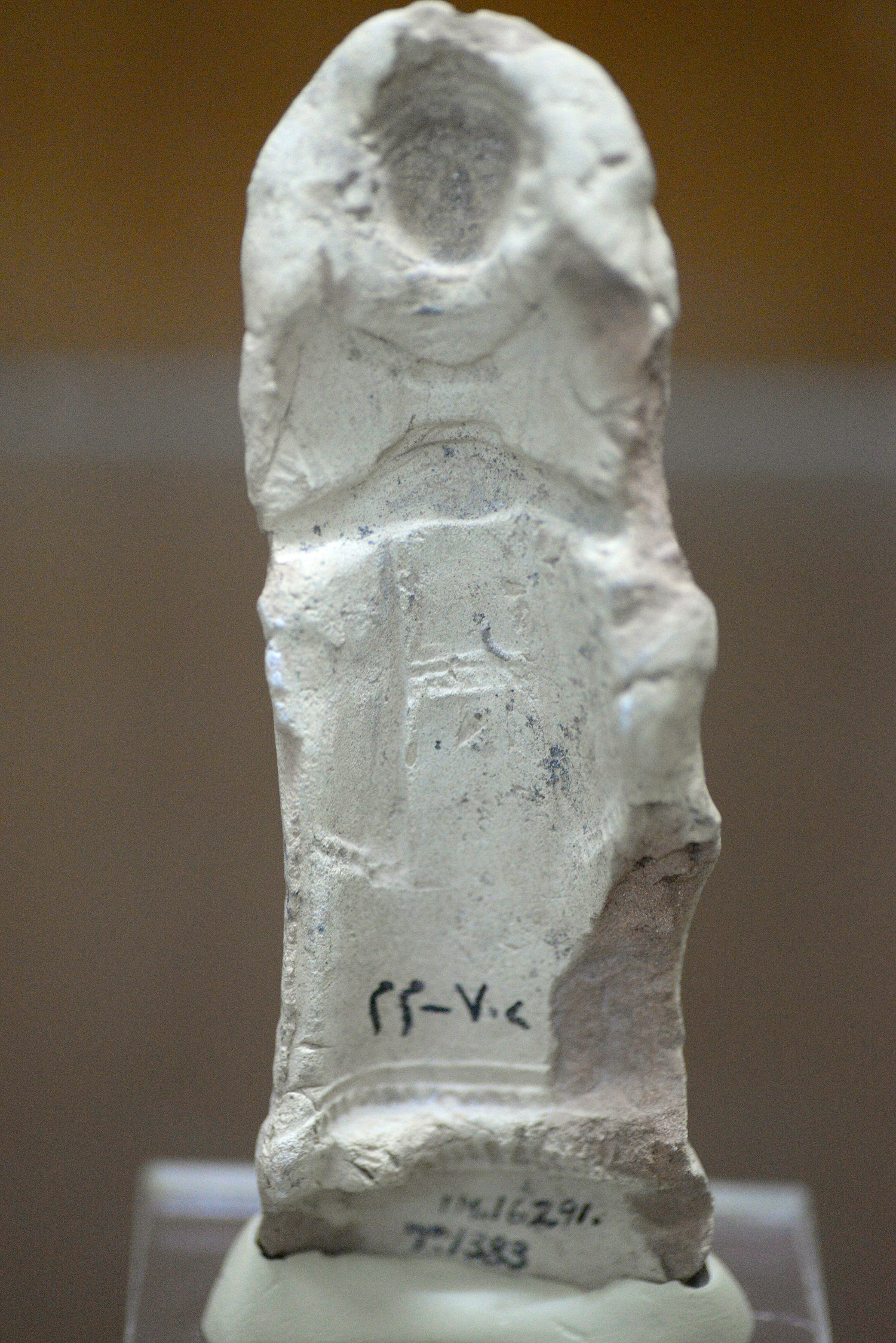 Clay mold which was used for making a woman's figurine. The woman is naked and she stands and holds her breasts by her hands. From Mesopotamia, modern-day Iraq. Old Babylonian period, 2003-1959 BCE. The Sulaymaniyah Museum, Iraq.