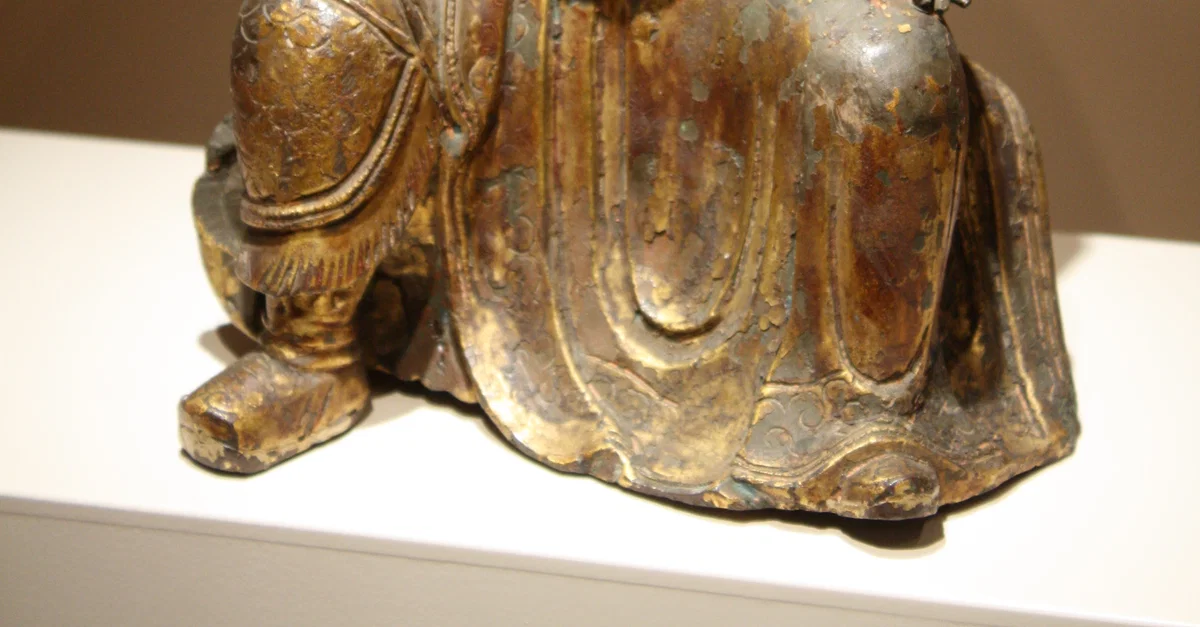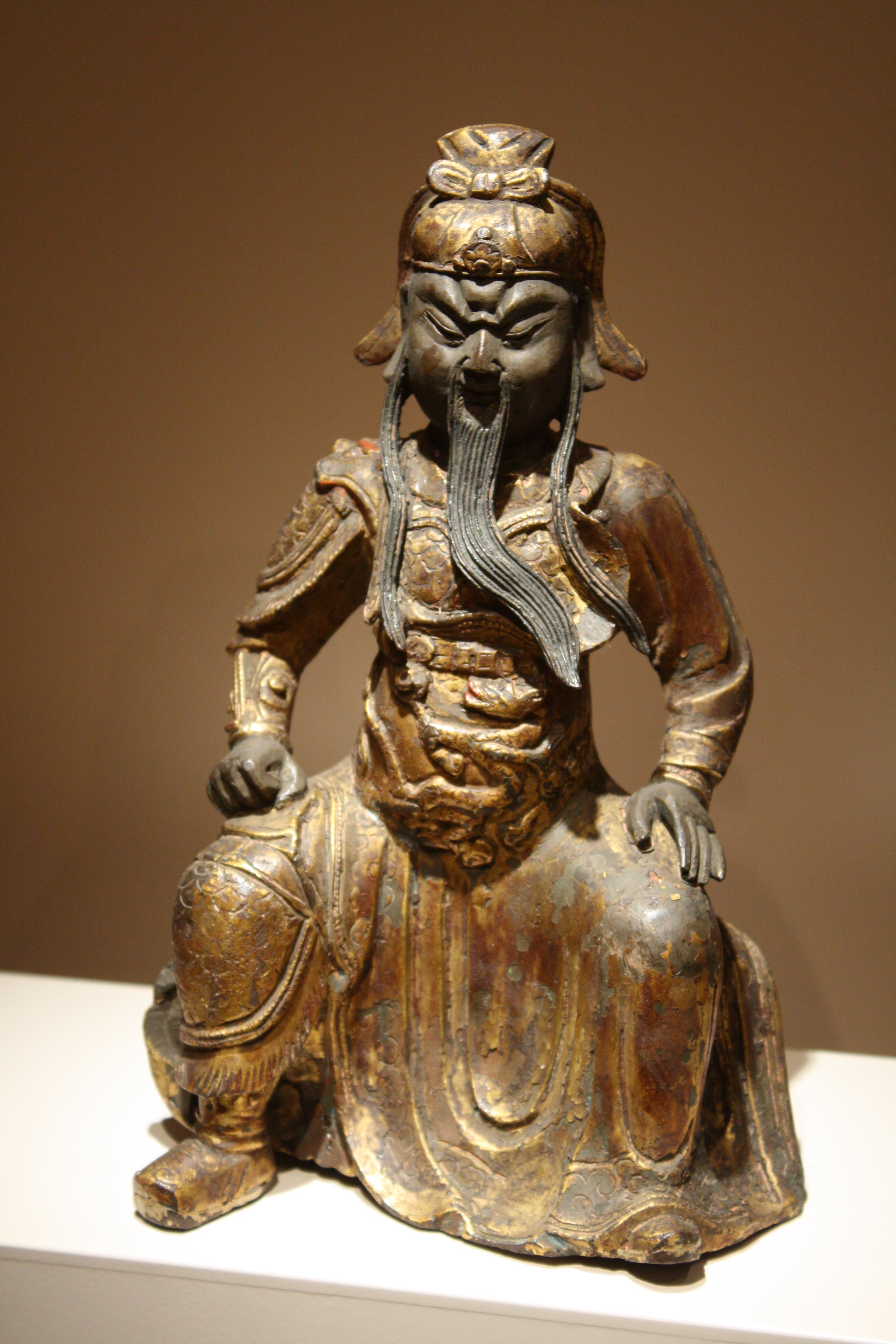 Kuan Ti, the Chinese deified general Guan Yu and god of War. Guan Yu died in 220 CE. Painted and gilded bronze. 14th - 17th century CE. (Museum of Asian Art, Corfu)