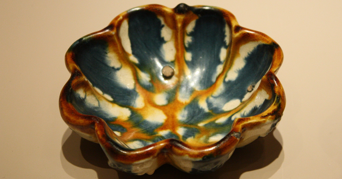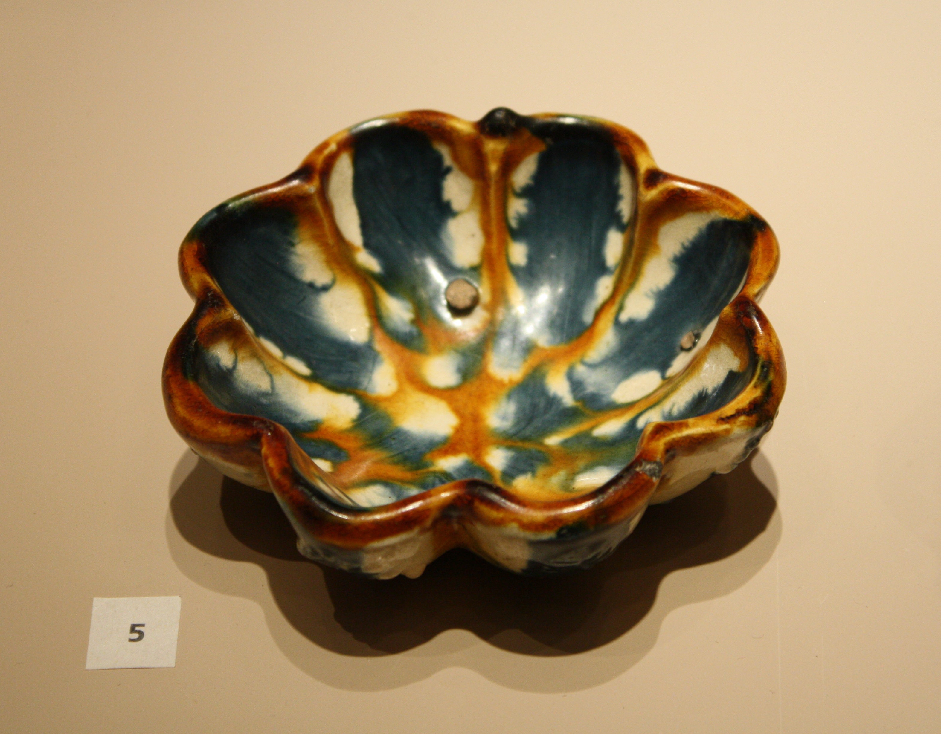 A burial vessel in the form of a flower, Sancal ware, mid-8th century CE, T'ang Dynasty. (Museum of Asian Art, Corfu)