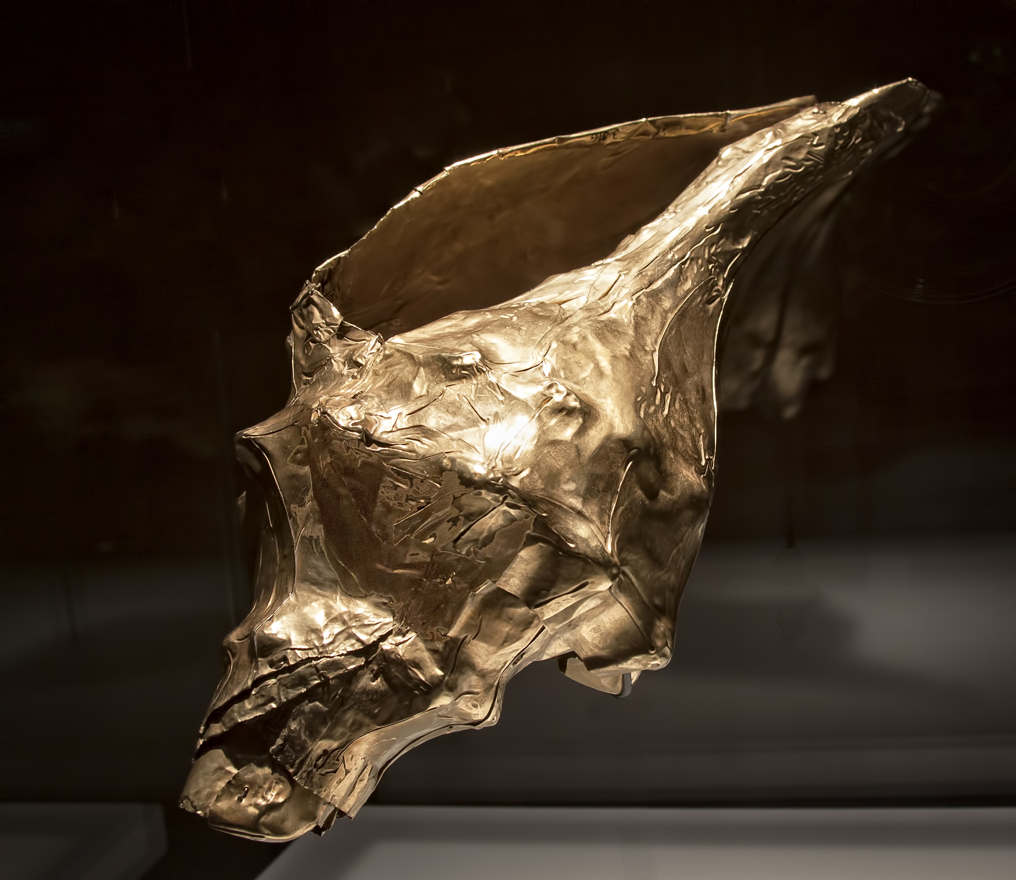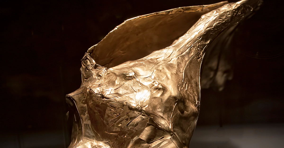 Gold snail shell, 100 BCE - 1000 CE. Restrepo, Valle del Cauca, Colombia. 14,8 x 30 cm (5.8 x 11.8 inches). Museo del Oro / The Gold's Museum (Bogota, Colombia).