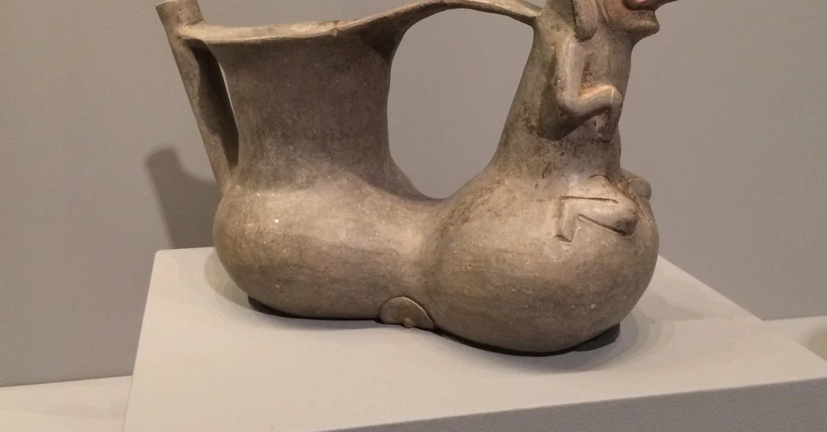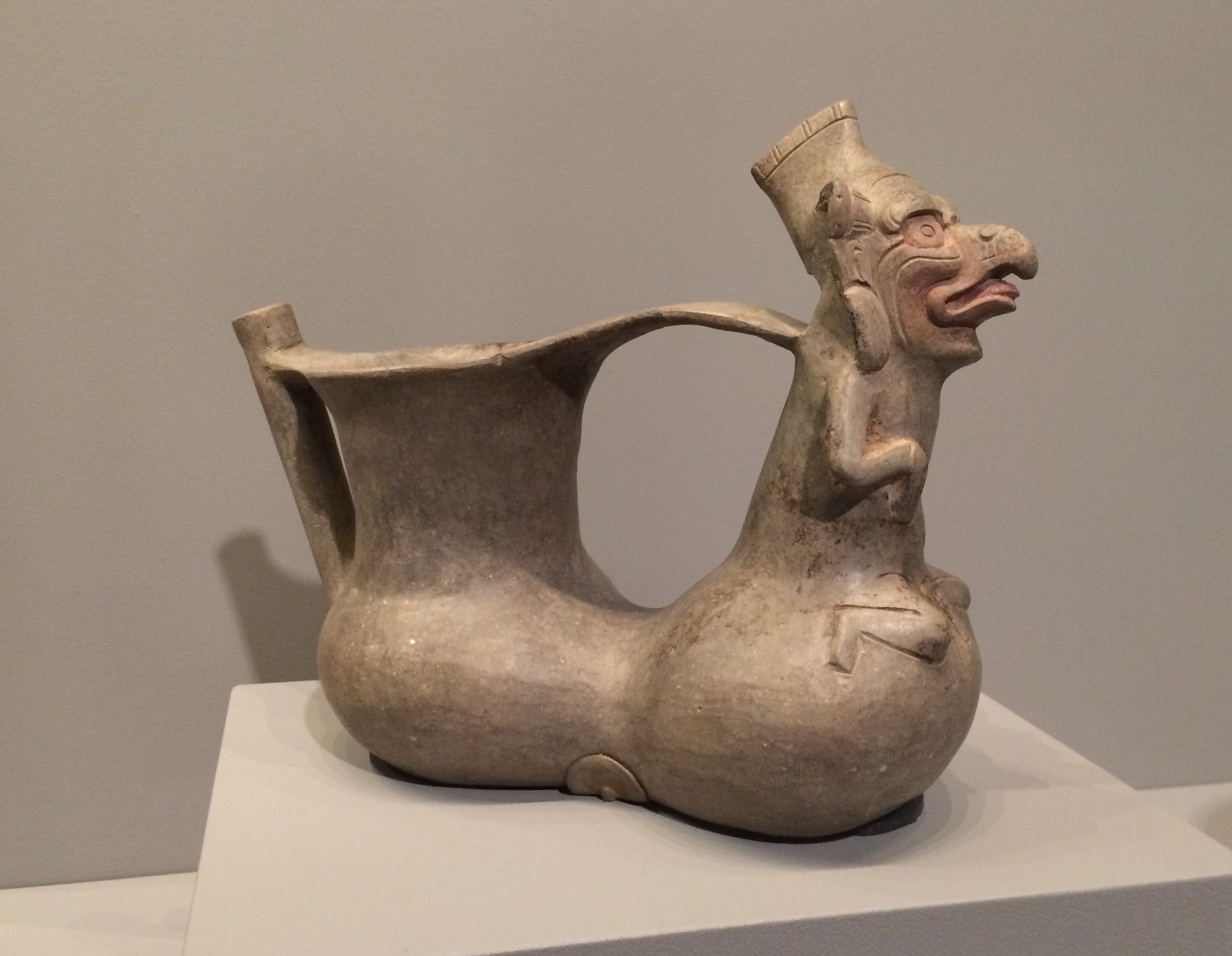 A double-chambered vessel with figured handle. Zapotec civilization, 300 BCE-300 CE, Mexico. (St. Louis Art Museum, Missouri)