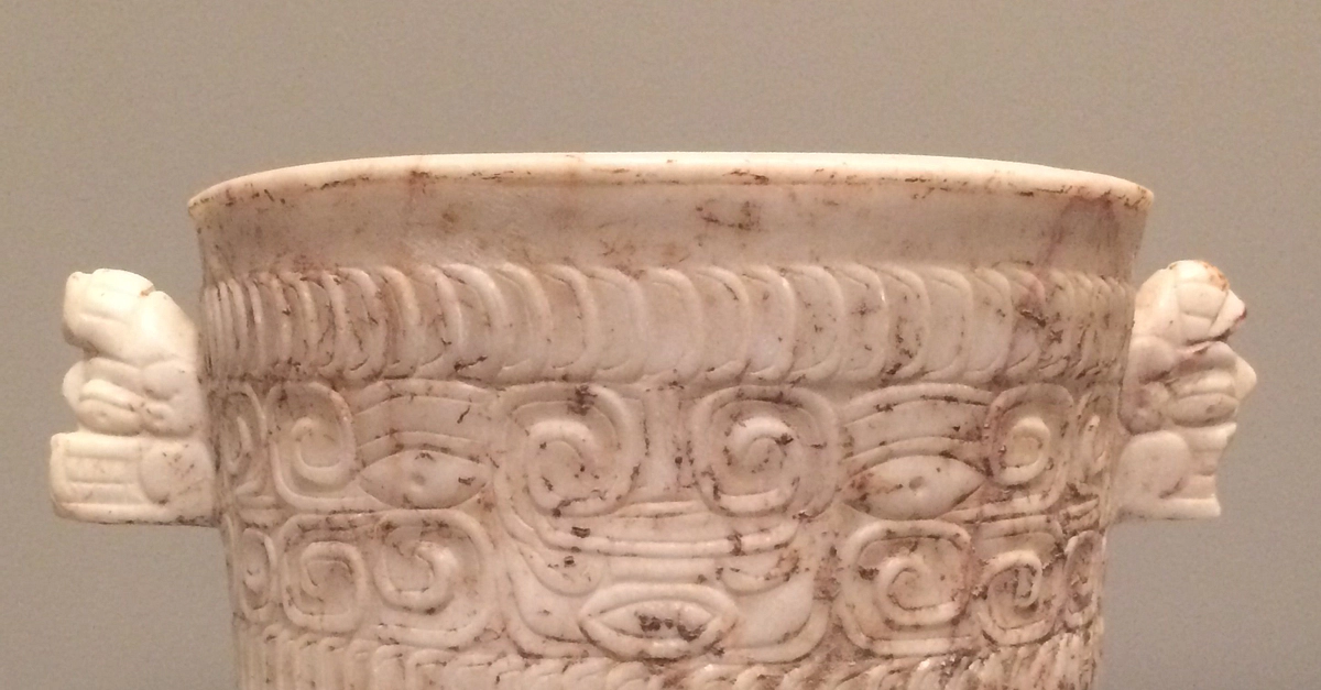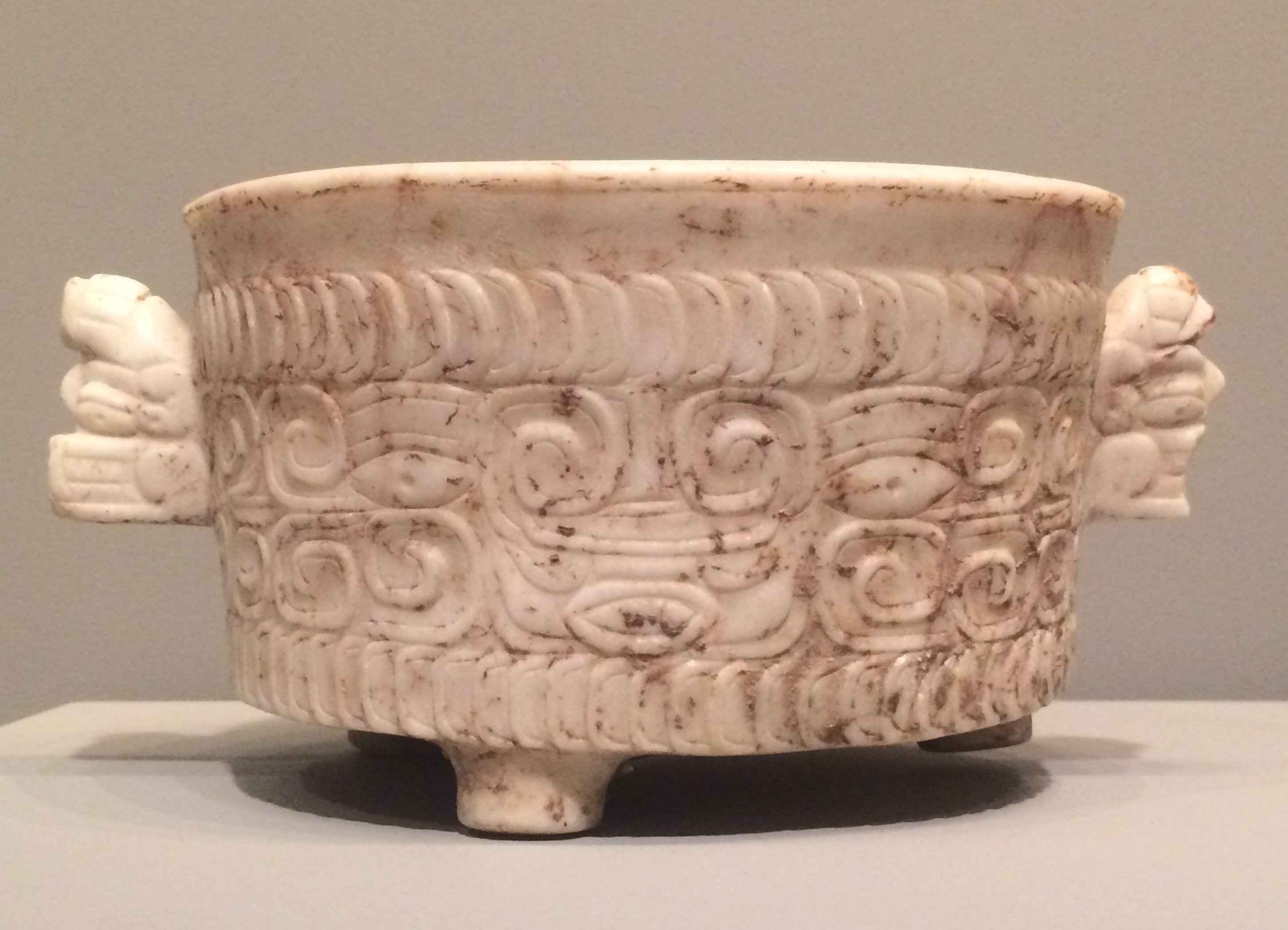 A Maya tripod marble vessel. Travesia, Cortés, Honduras, 600-909 CE. (St. Louis Art Museum, Missouri)