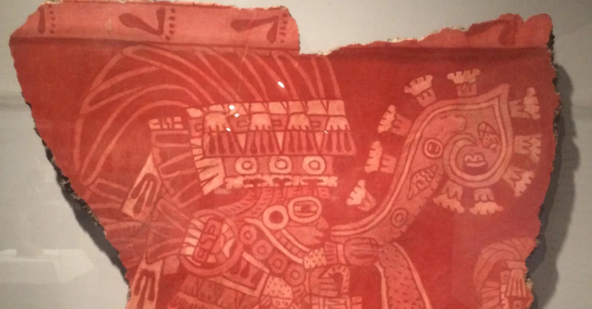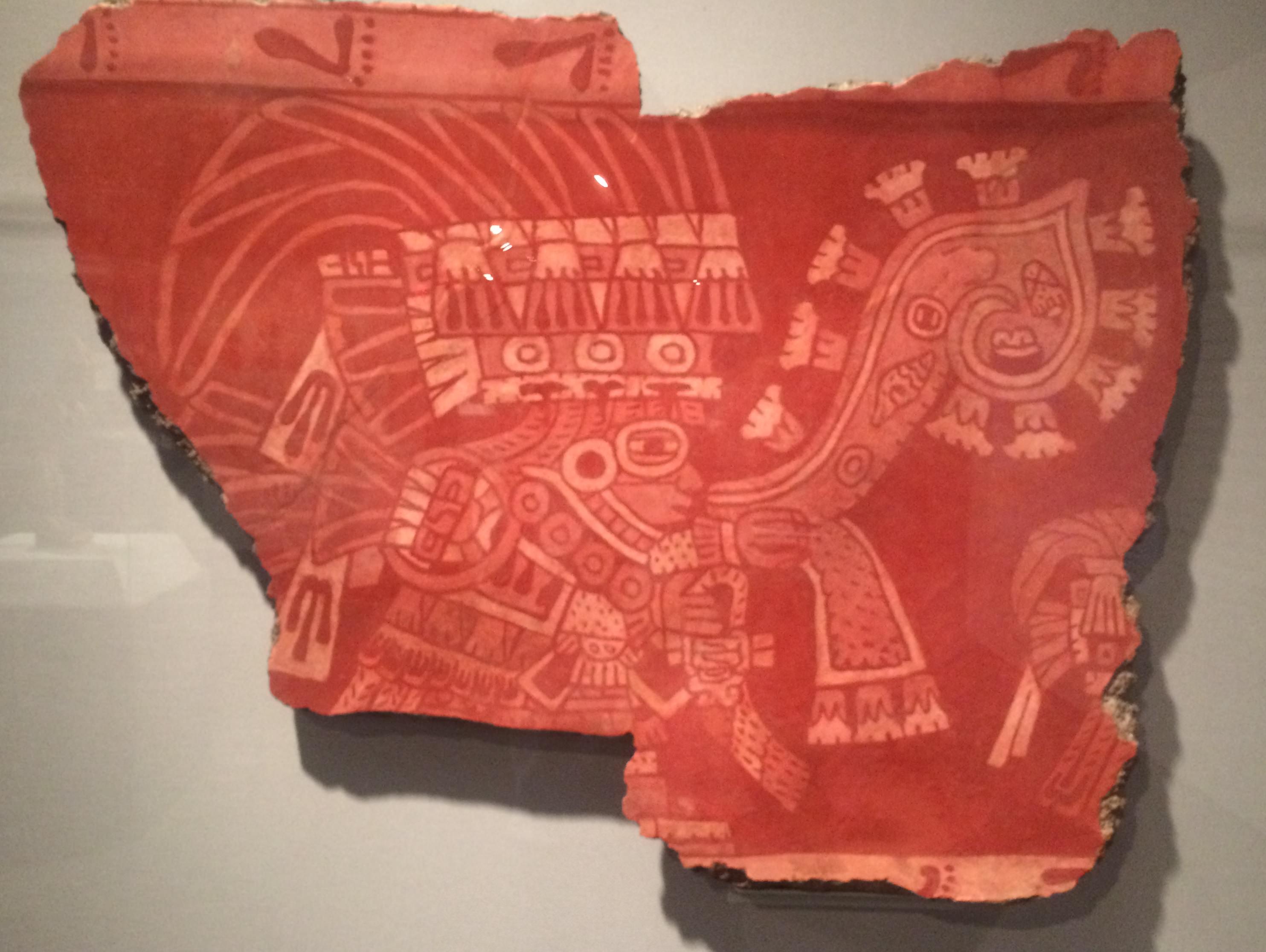 A fragment of a fresco from Teotihuacan depicting a nobleman. Mexico, c. 500-550 CE. The figure carries an incense bag. (St. Louis Art Museum, Missouri)