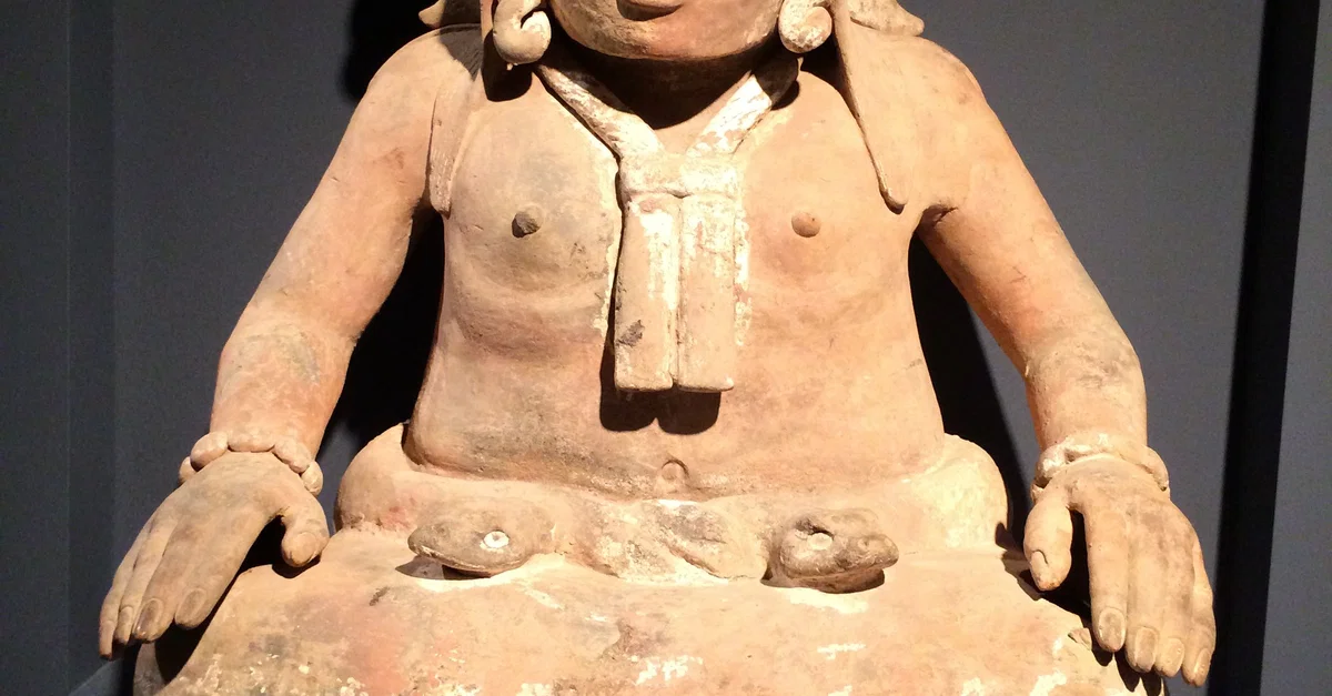 A ceramic seated female figure from Veracruz. Mexico, 600-909 CE. (St. Louis Art Museum, Missouri)