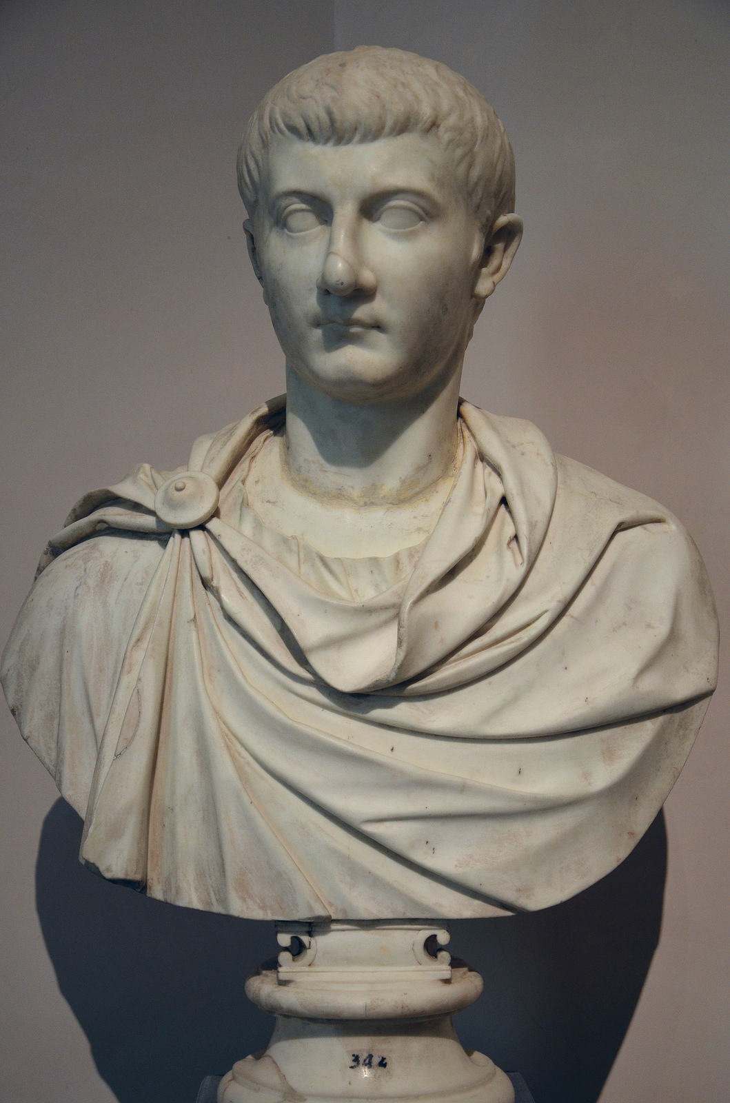 Drusus Julius Caesar (Drusus the Younger) was was the only child of Roman Emperor Tiberius and his first wife, Vipsania Agrippina. He was also a maternal cousin of the Caligula, a paternal cousin of Claudius and a second cousin of Nero. The marble bust is on display in the Museo del Prado in Madrid.