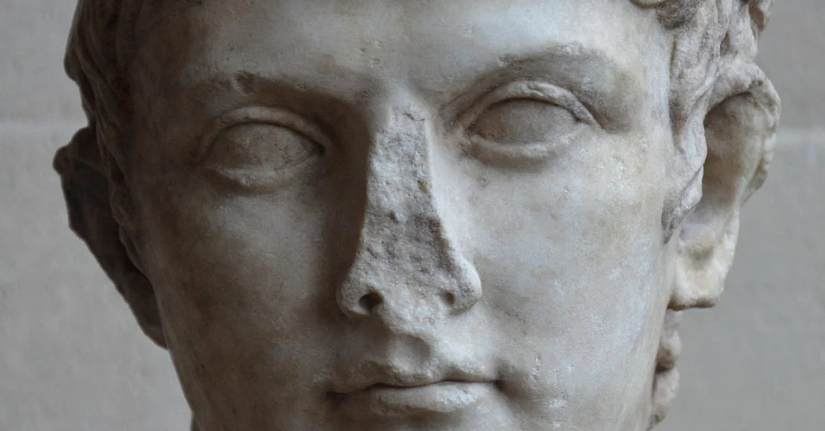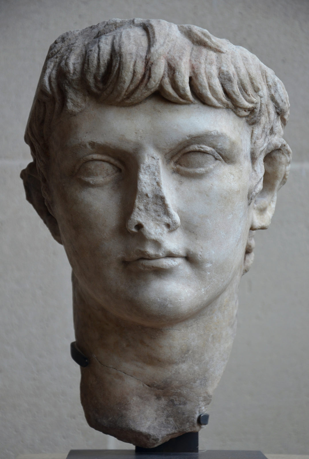 Marble head of Germanicus, carved in about 10 CE to commemorate the journey of the Emperor Augustus with his adoptive grandson Germanicus to Pannonia (today Hungary). Now in Musée du Louvre, Paris.