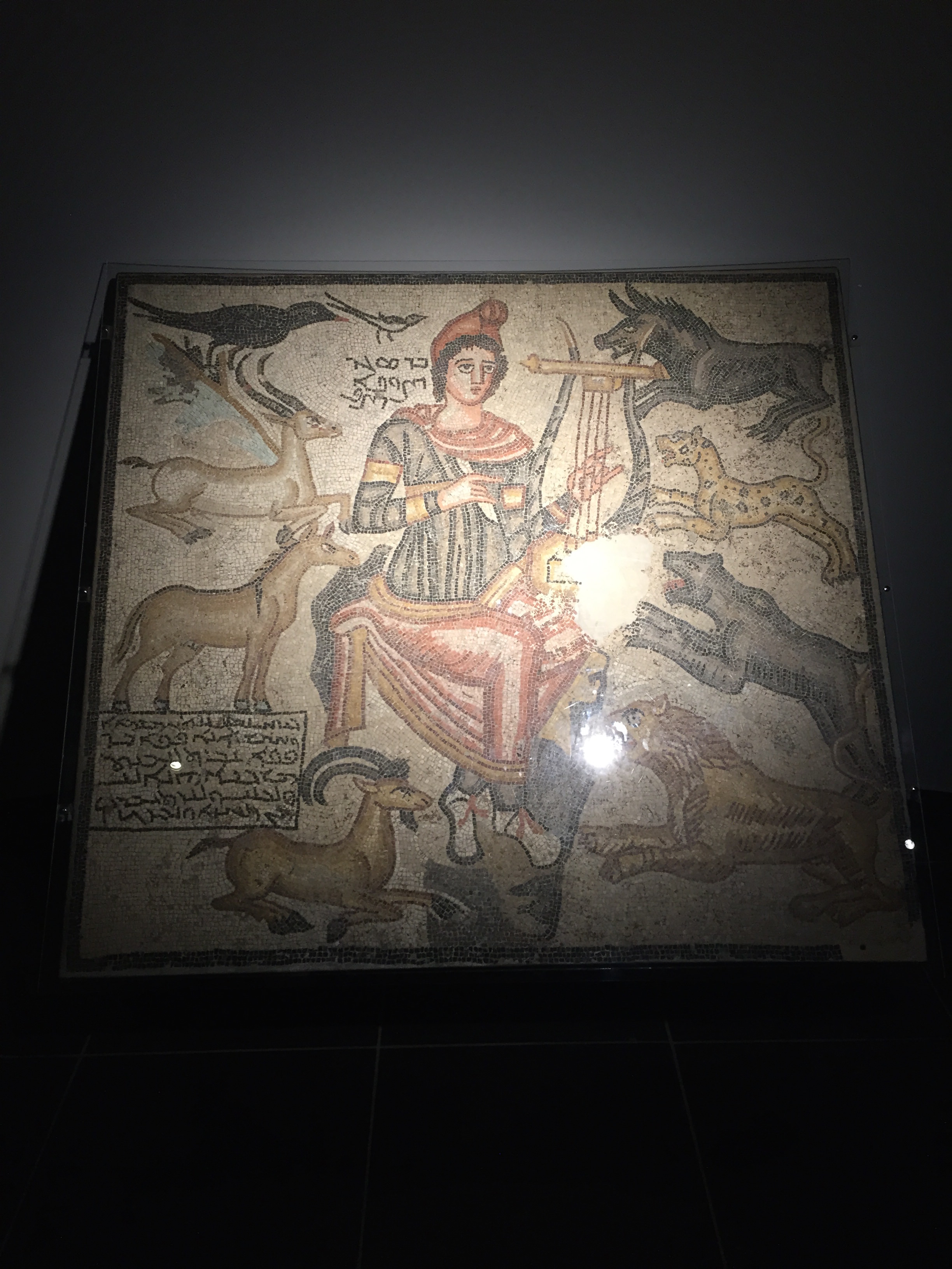 Orpheus playing his harp for the wild beasts, dates from about 194 CE and is the oldest of the Edessa/Urda mosaics. The artist's name is even engraved in the piece, "Bar Saged."