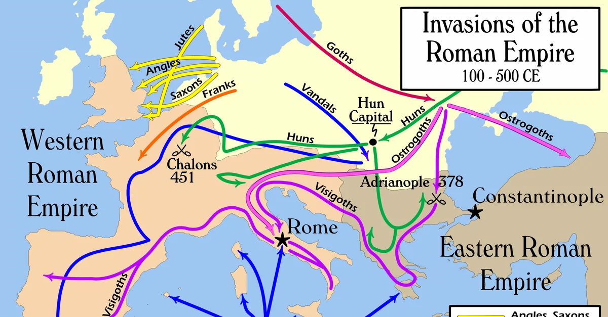 MapMaster. (2015, October 16). Invasions of the Roman Empire. World History Encyclopedia. https://www.worldhistory.org/image/4131/invasions-of-the-roman-empire/