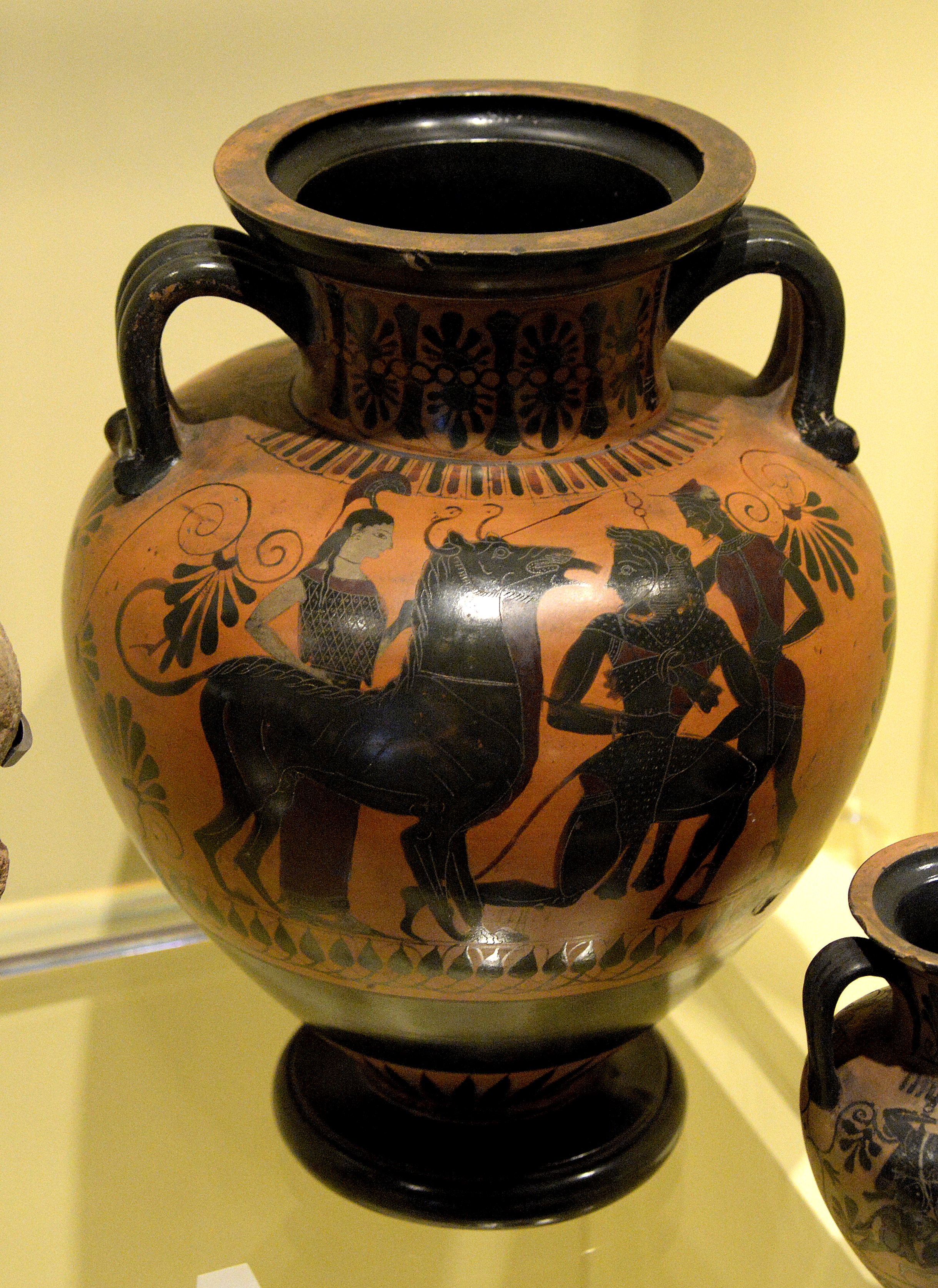 A black-figure amphora depicting Hercules and an Amazon. Attica, Greece, 6th century BCE. (National Museum of Scotland, Edinburgh, UK)