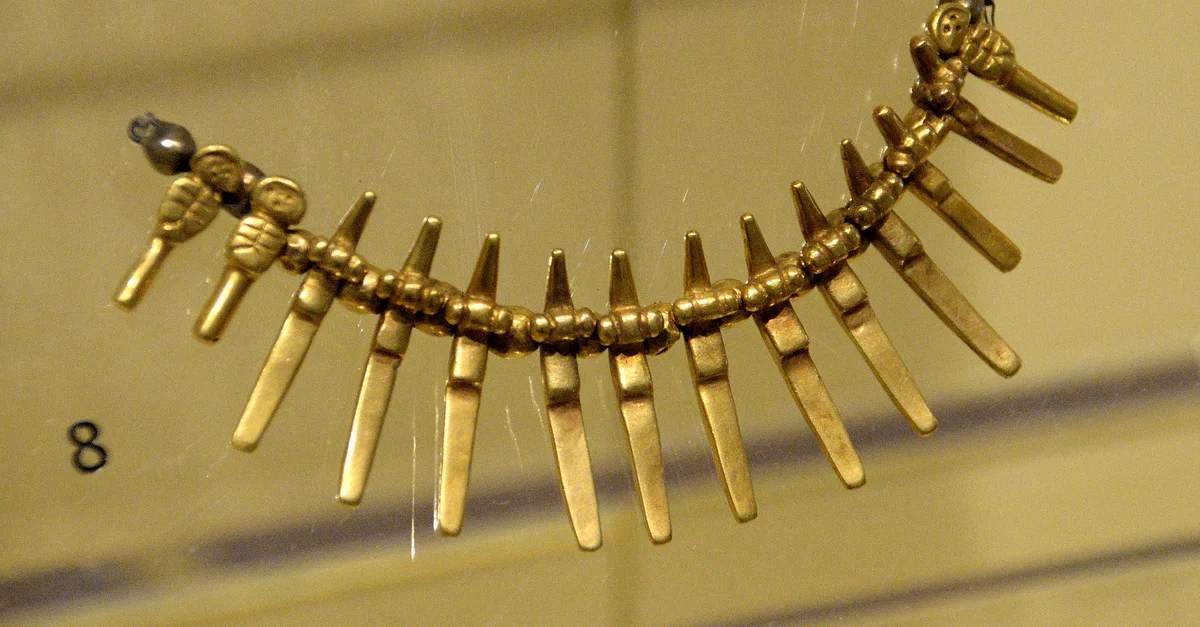 Amin, O. S. M. (2015, November 28). Quimbaya Gold Necklace. World History Encyclopedia. https://www.worldhistory.org/image/4252/quimbaya-gold-necklace/